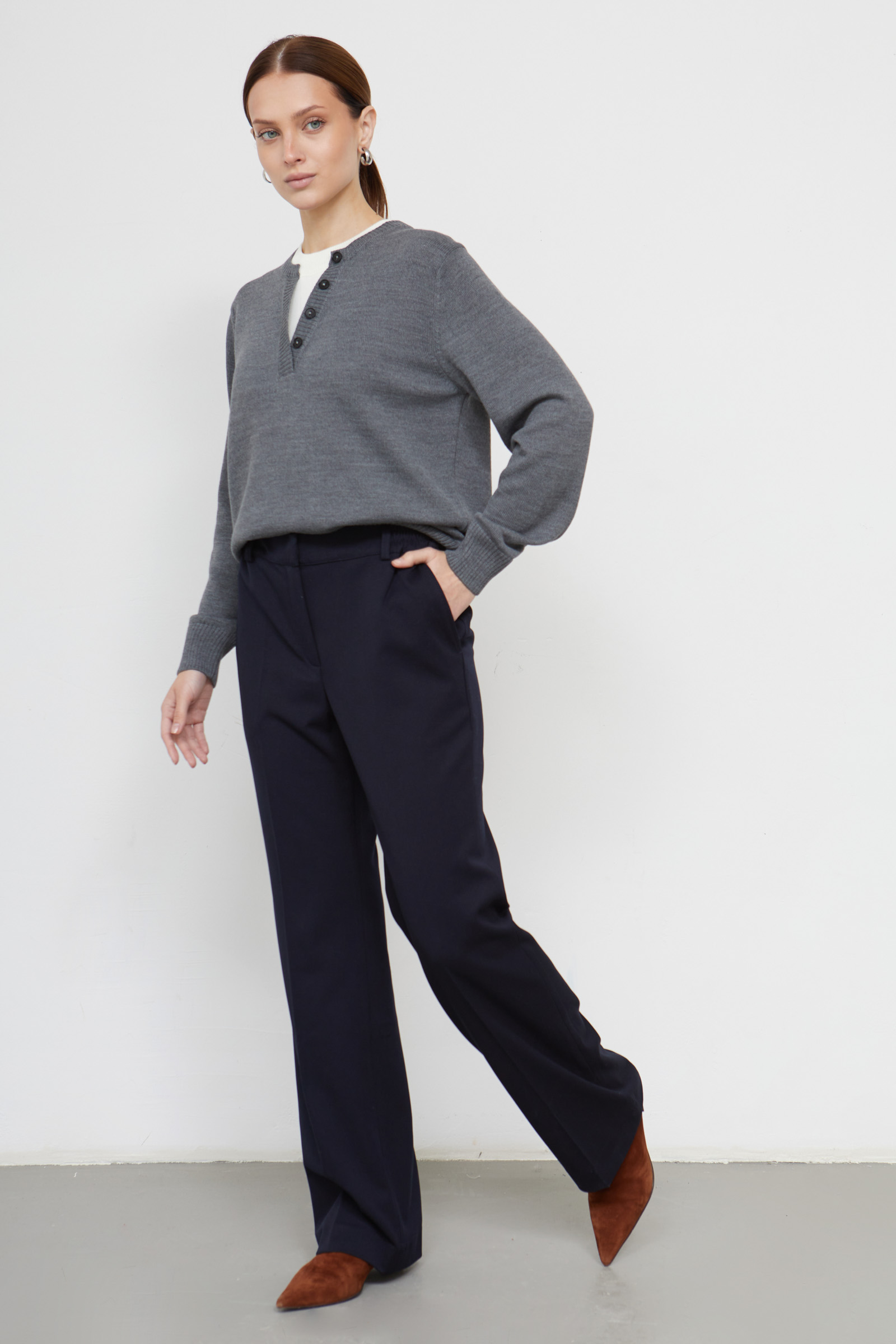 Классические прямые брюки из поливискозы на эластичном поясе.