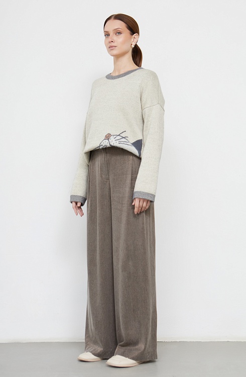 Широкие брюки из струящейся ткани с меланжевым эффектом и складками.