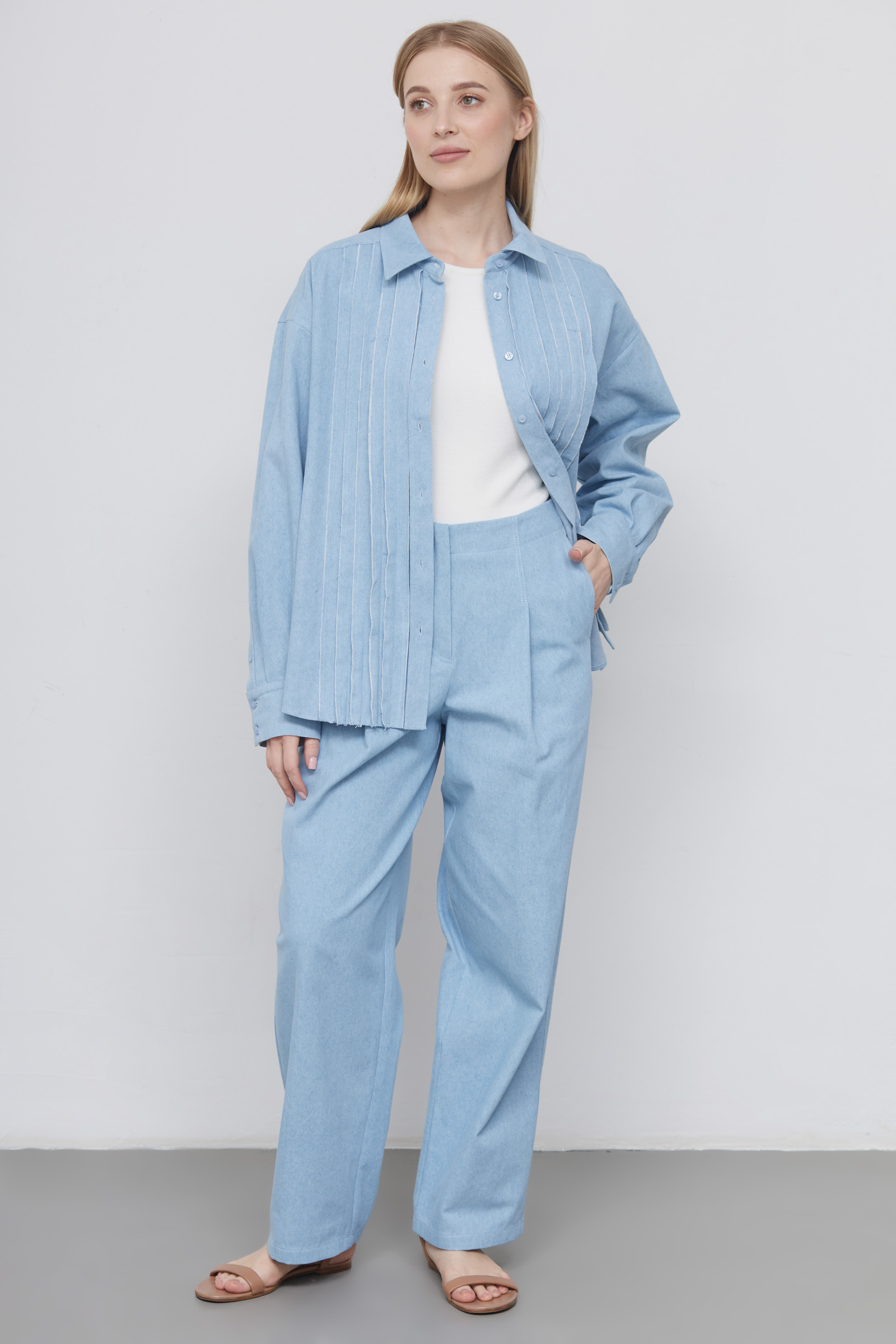 Объемные брюки с защипами из тонкого денима.