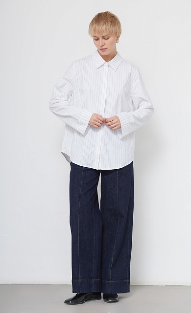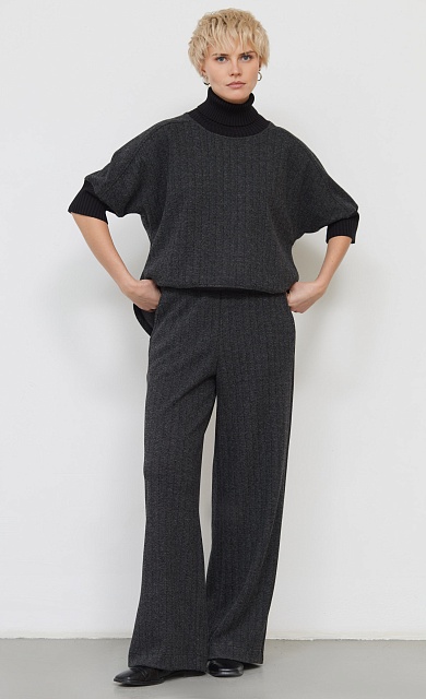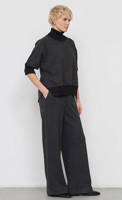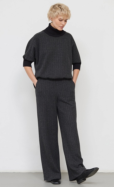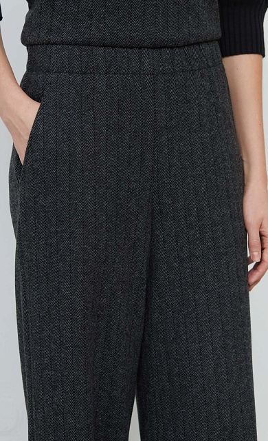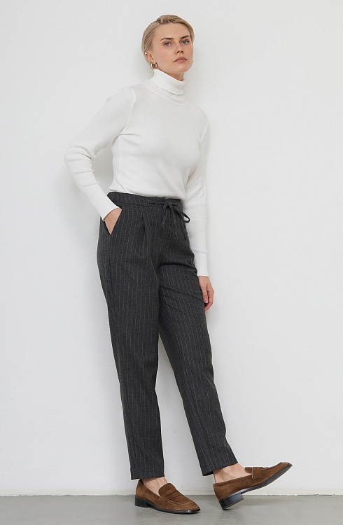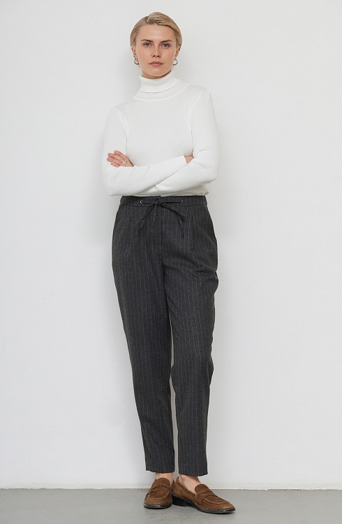 Слегка зауженные брюки в полоску из мягкой костюмной ткани с шерстью.