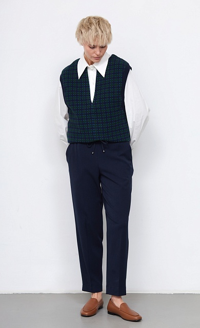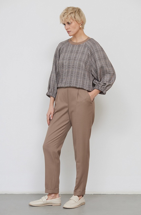 Зауженные брюки из мягкой фланелевой ткани на эластичном поясе.