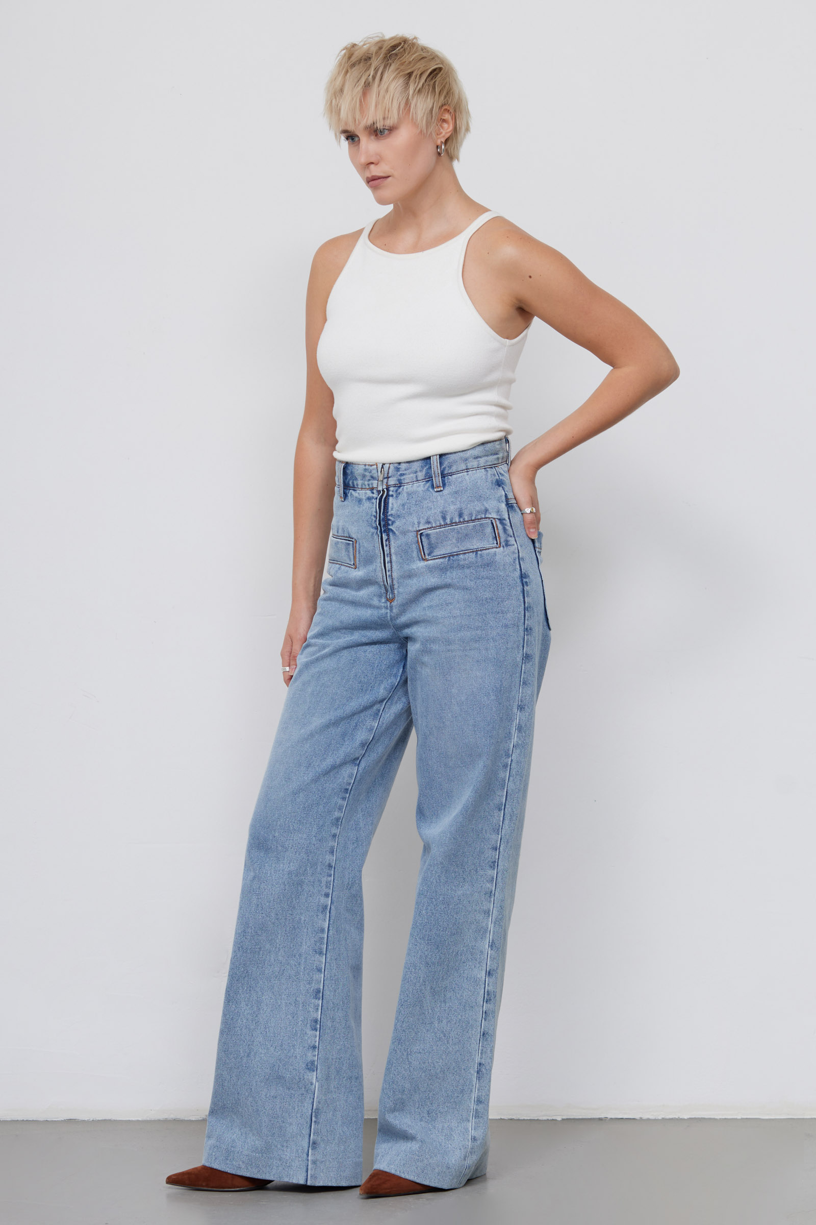 Джинсы с открытой молнией
