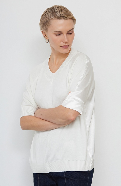 Комбинированный джемпер oversize тонкой вязки со спинкой из атласа.