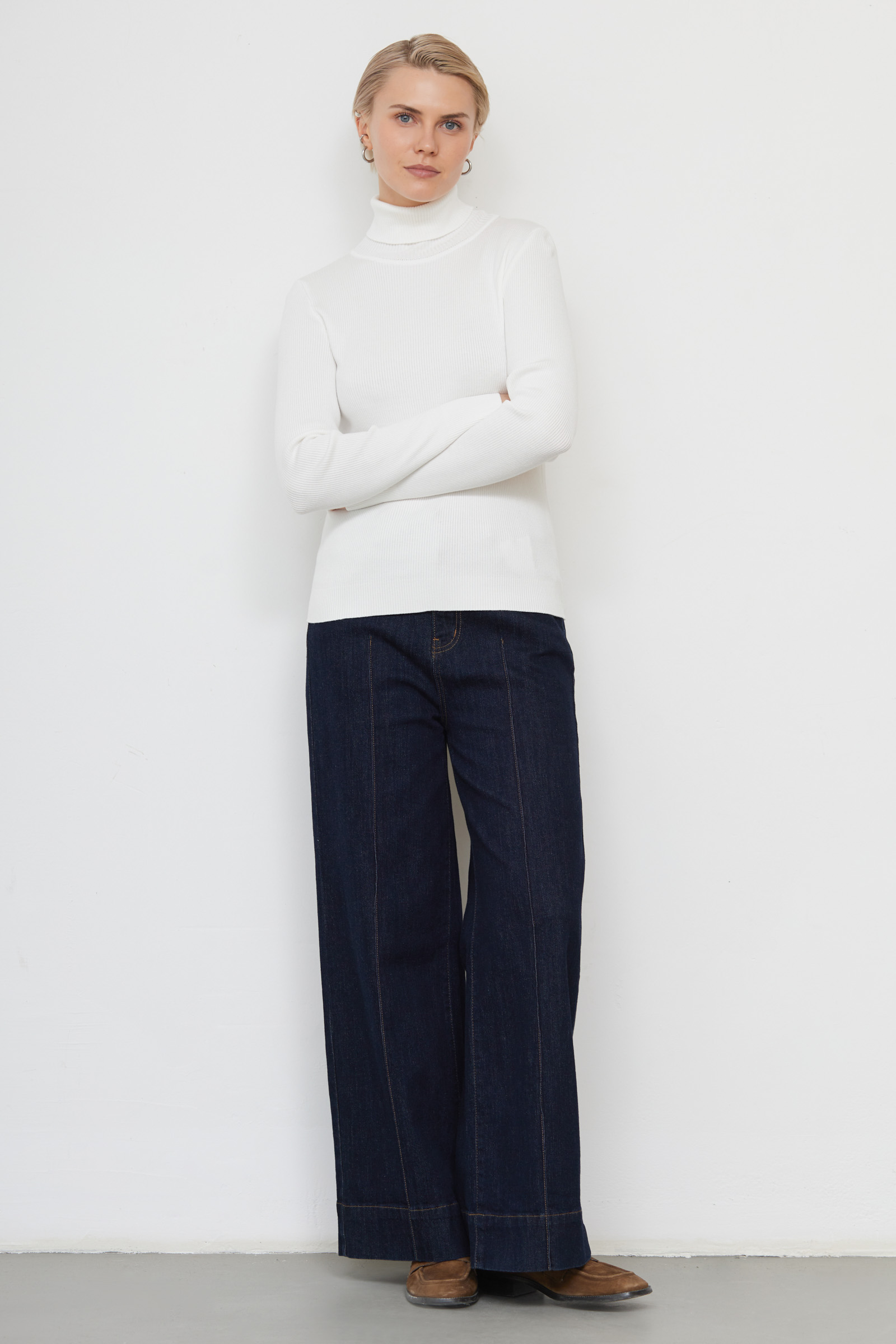 Базовая водолазка из мягкого вискозного трикотажа в рубчик.