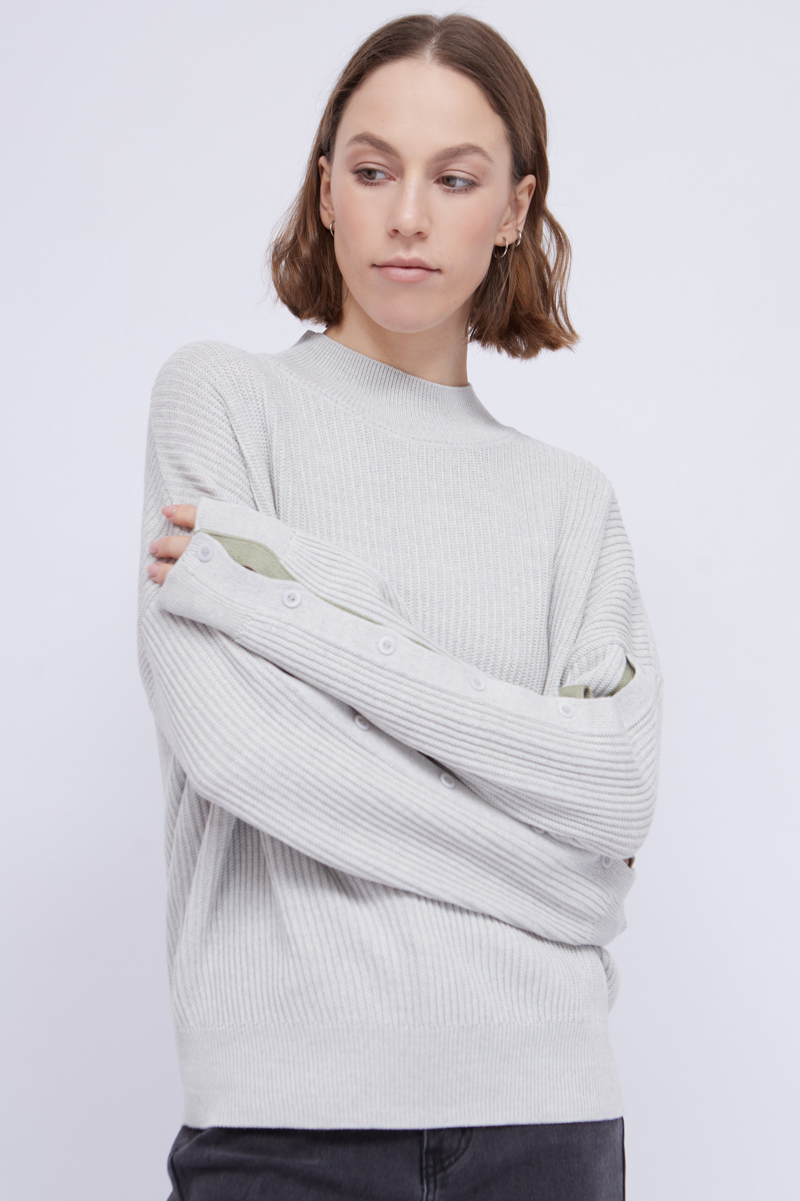 Полушерстяной джемпер в рубчик с рукавами на пуговицах.