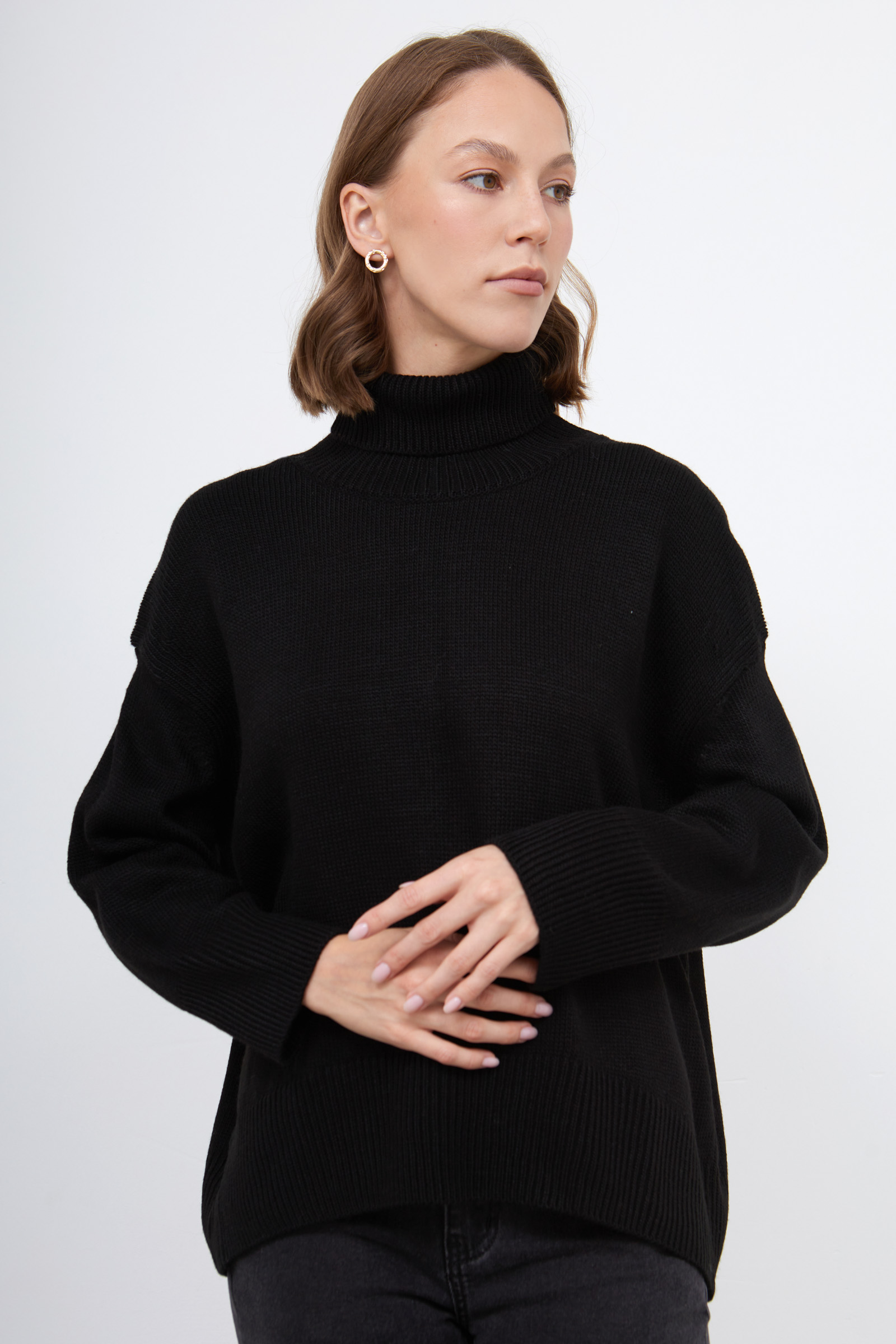 Свитер oversize с шерстью и высоким воротником.