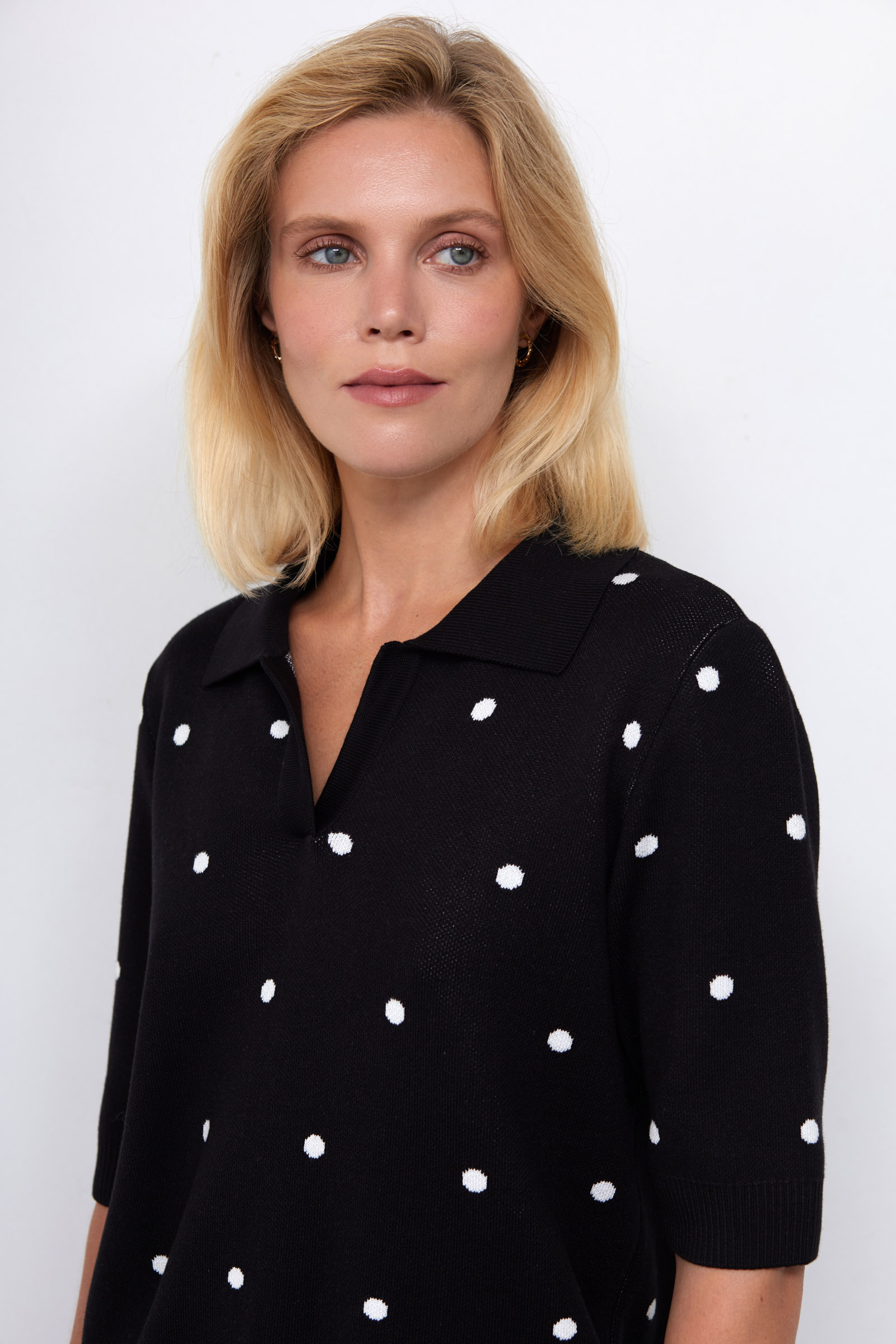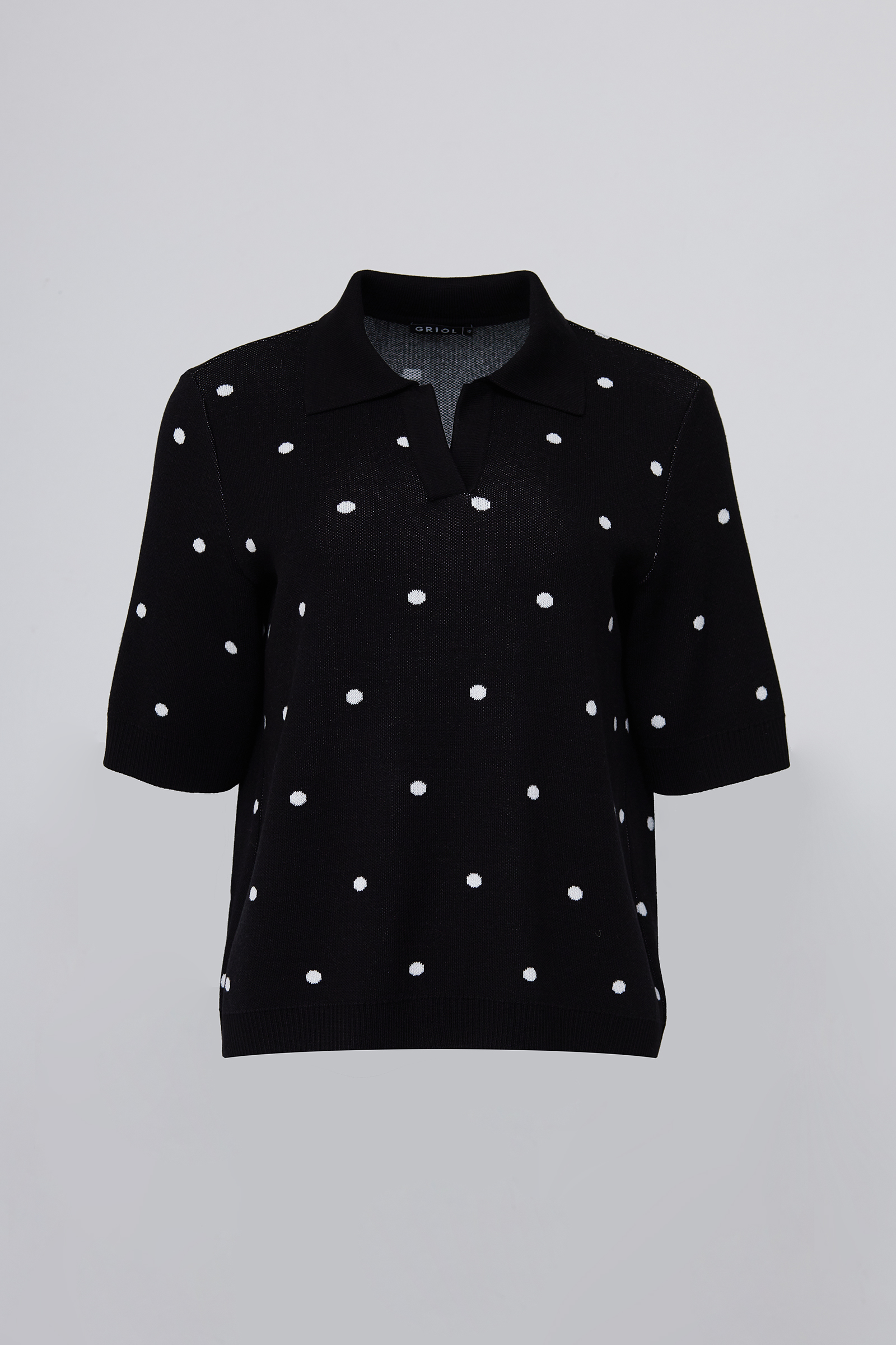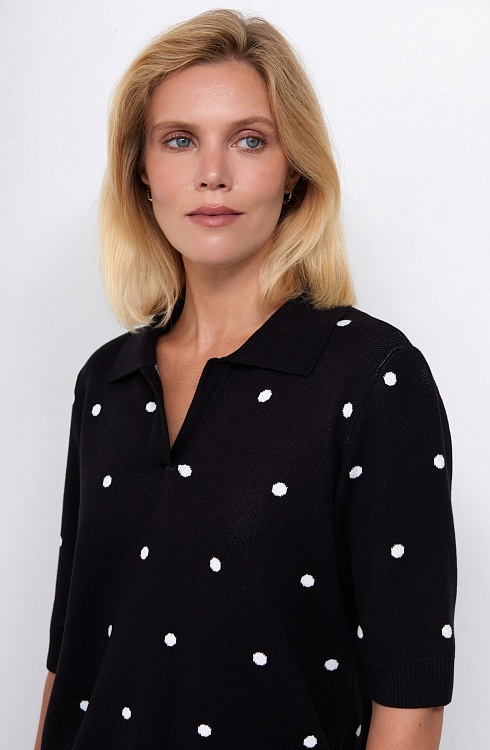 Джемпер поло из мягкого вязаного трикотажа в горошек.
