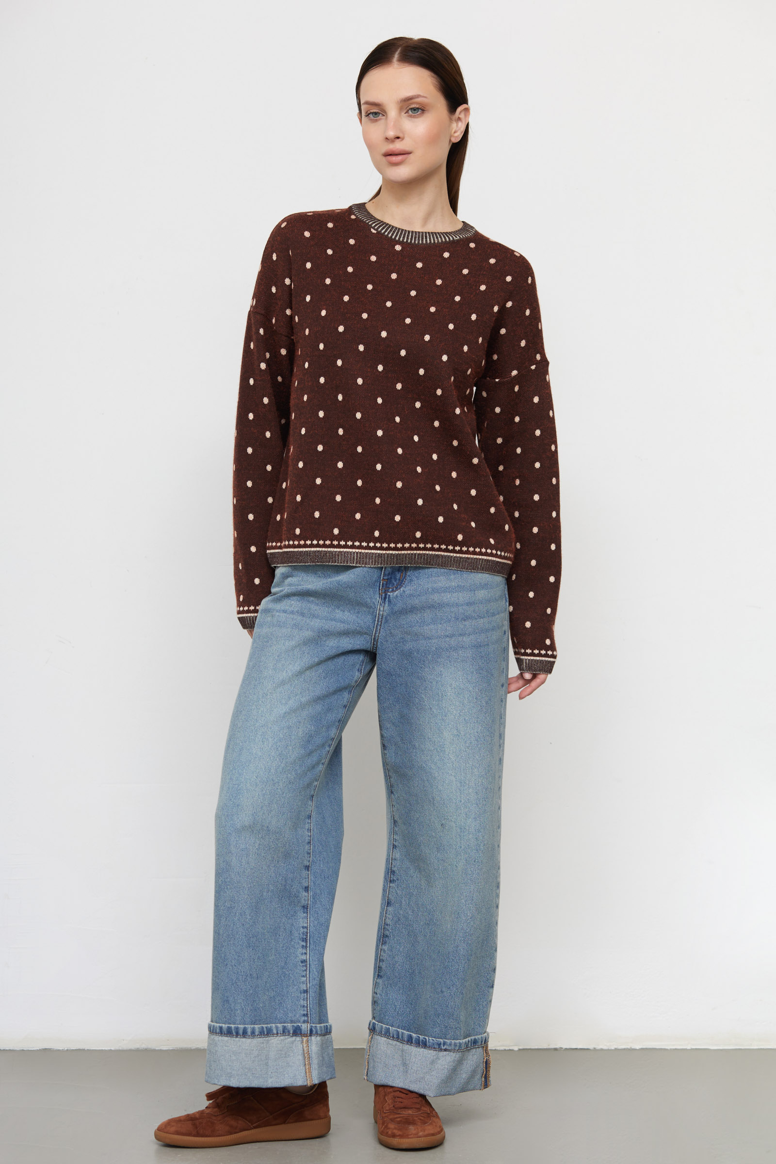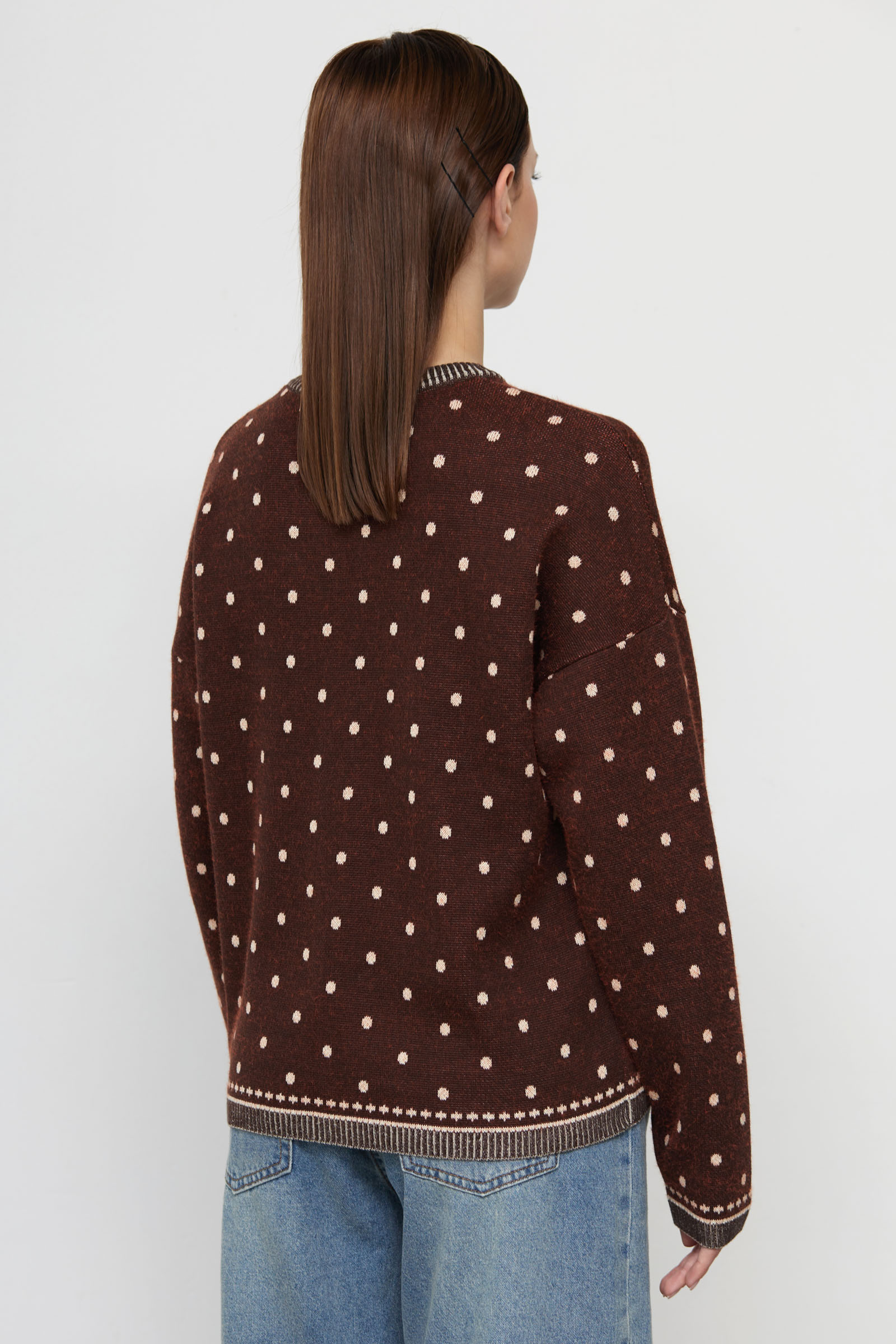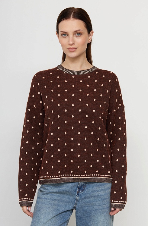 Джемпер oversize из мягкого вязаного трикотажа жаккардовой вязки в горошек.