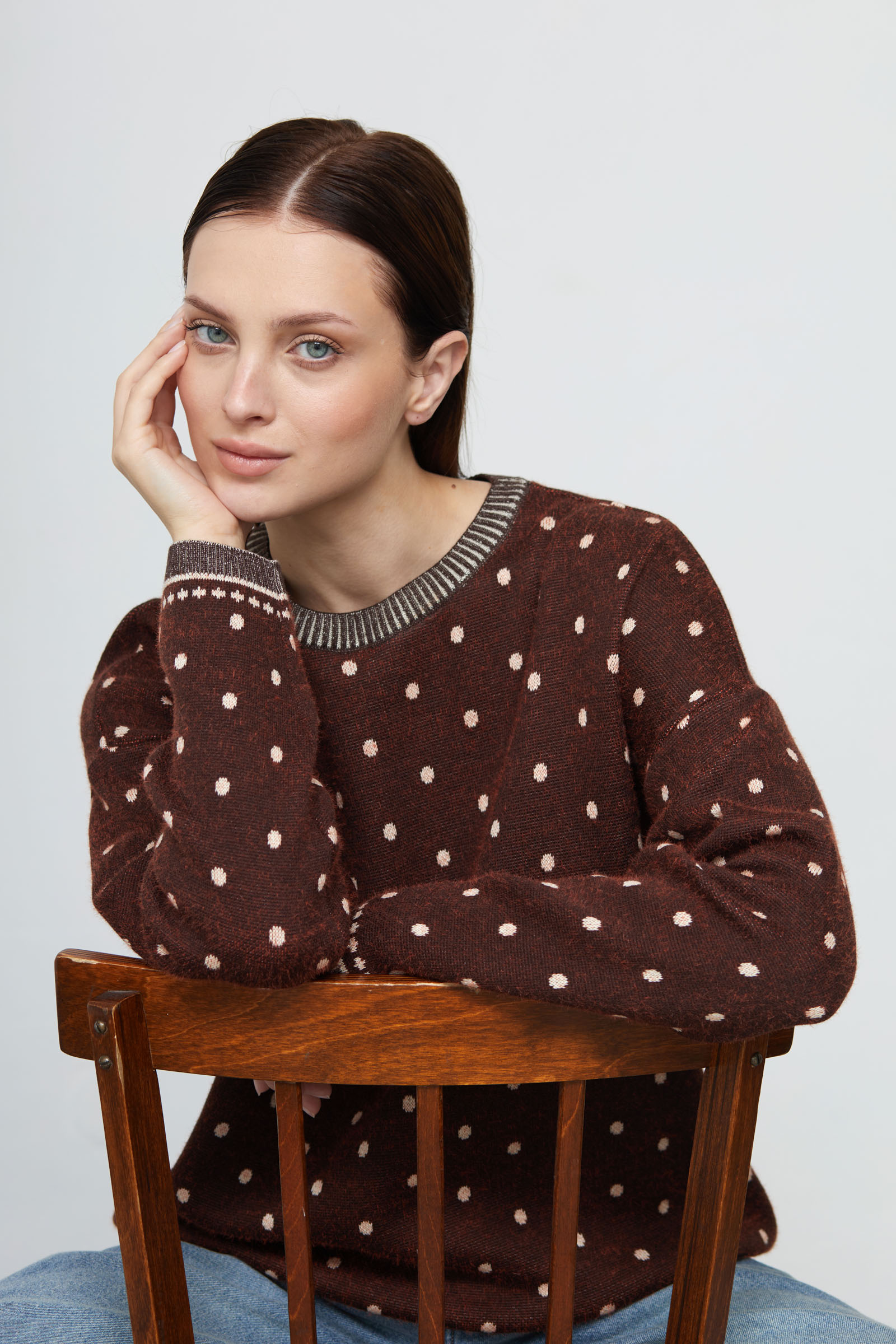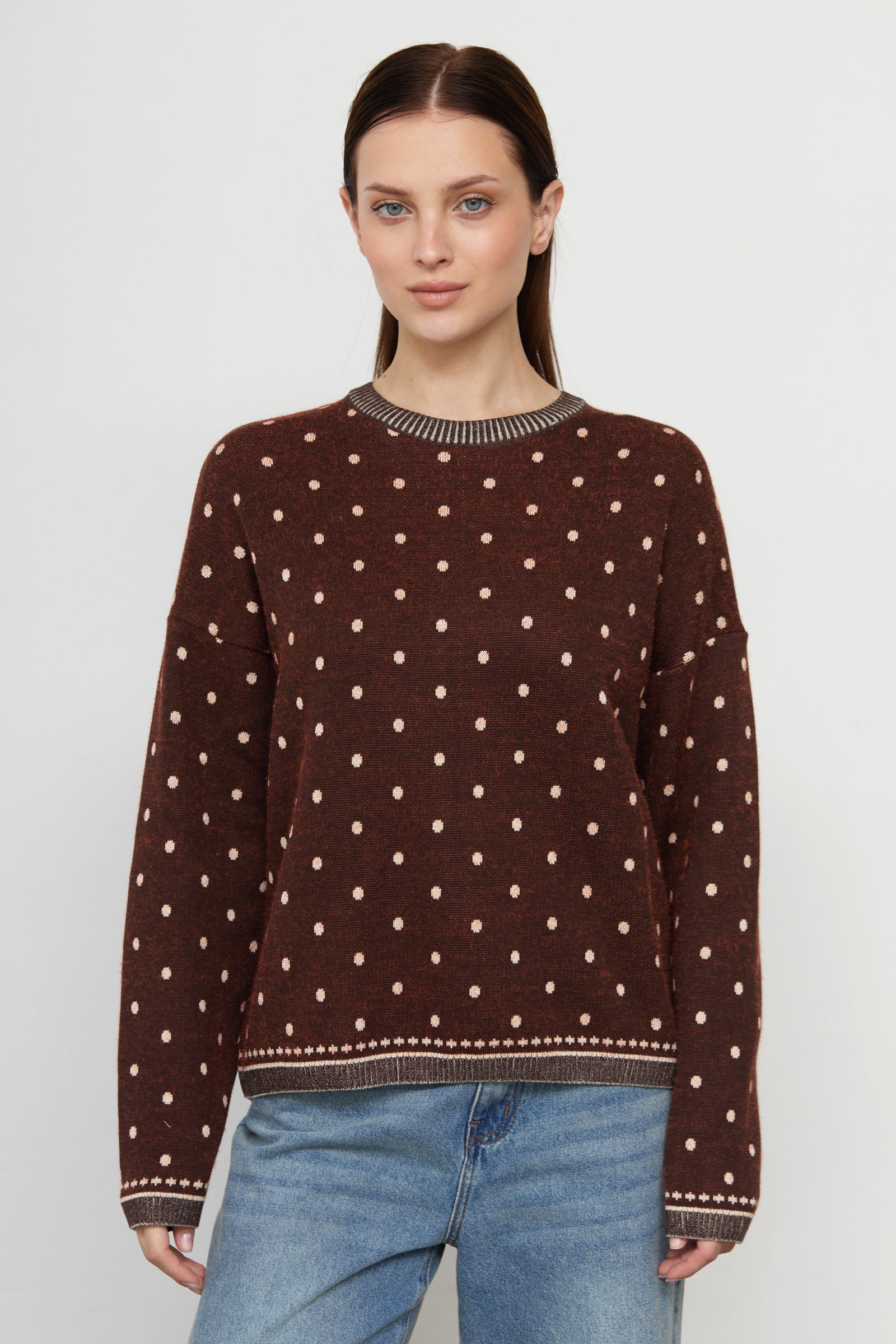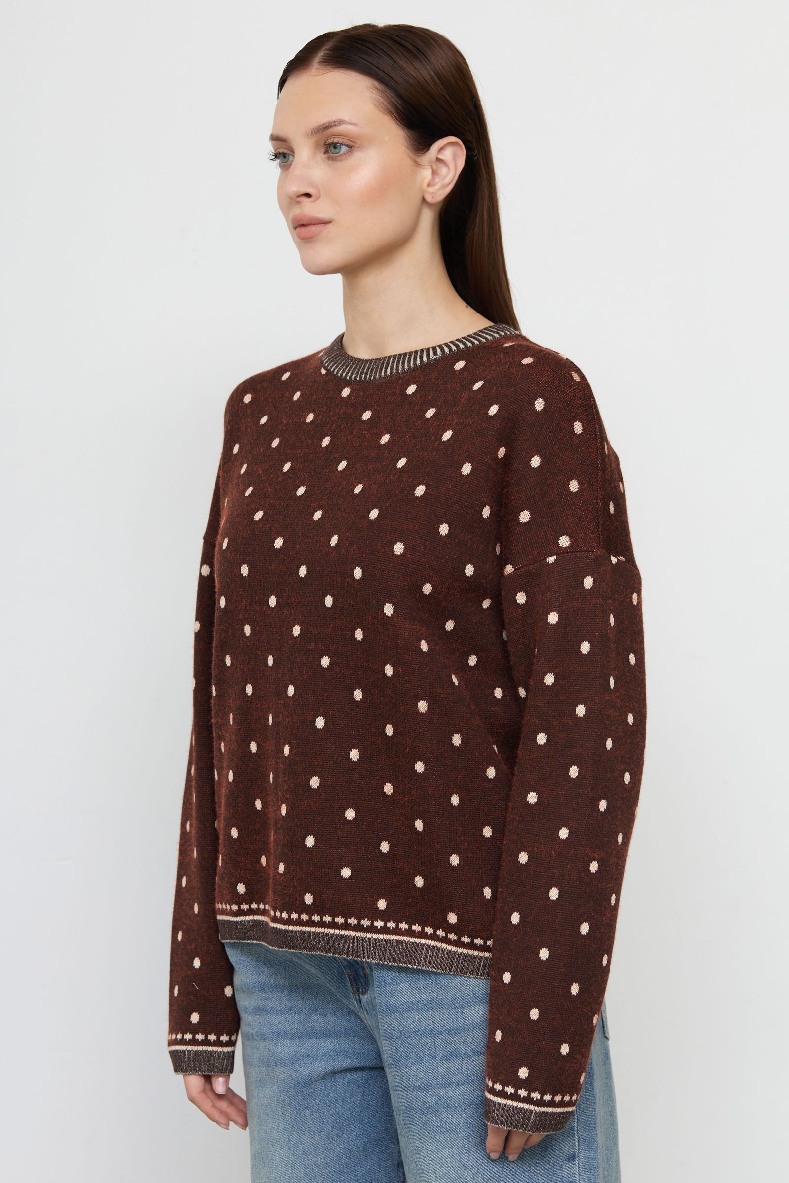 Джемпер oversize из мягкого вязаного трикотажа жаккардовой вязки в горошек.