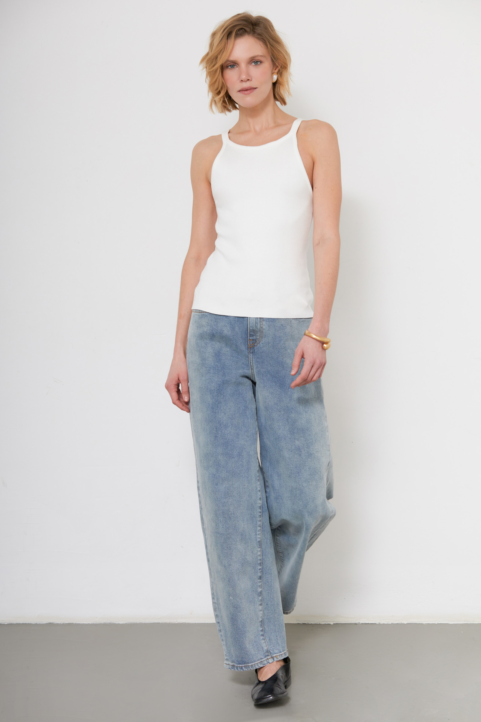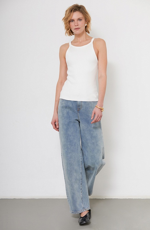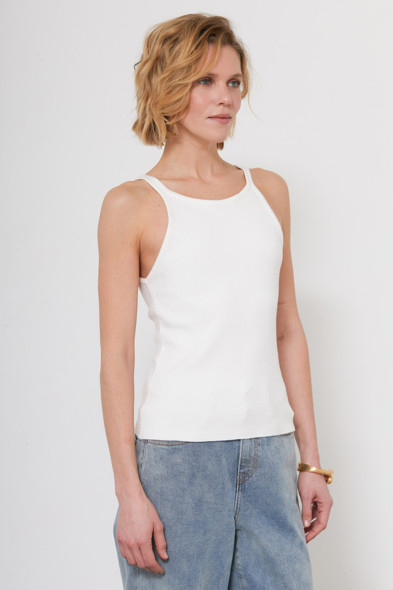Топ из мягкого вязаного трикотажа на тонких бретелях.