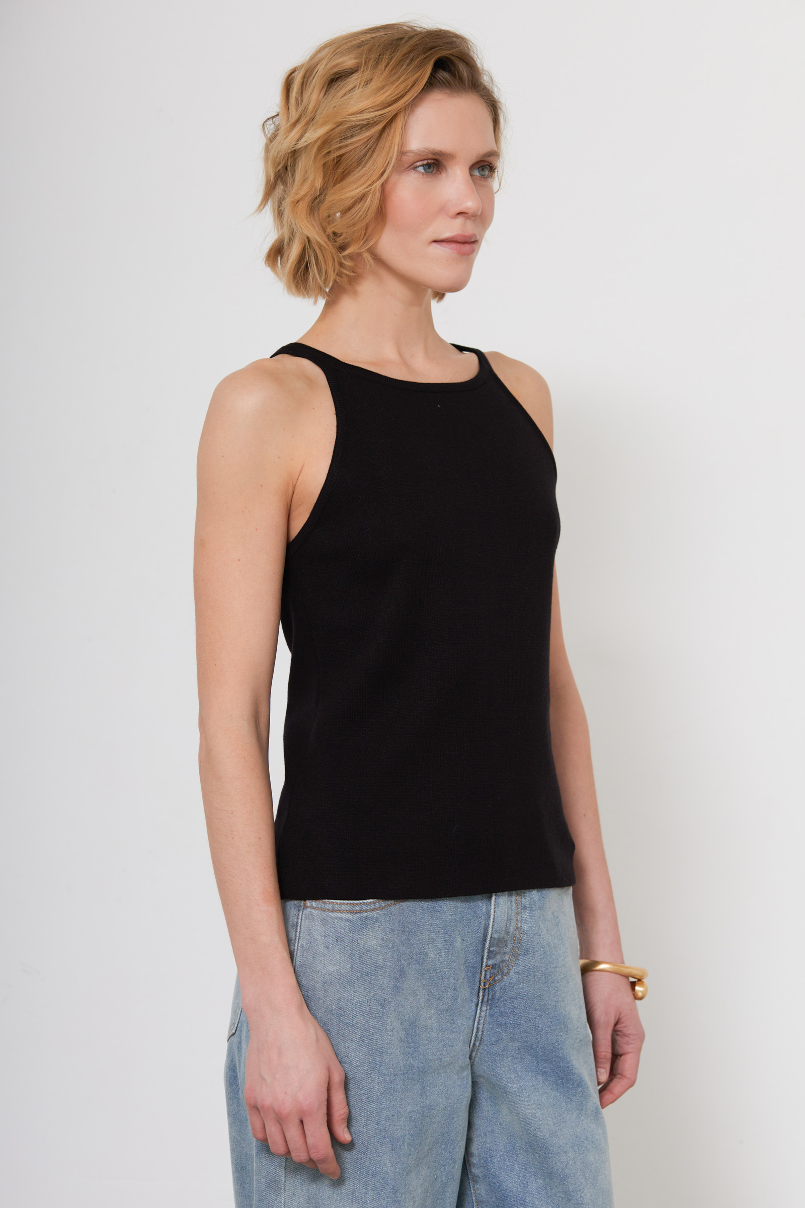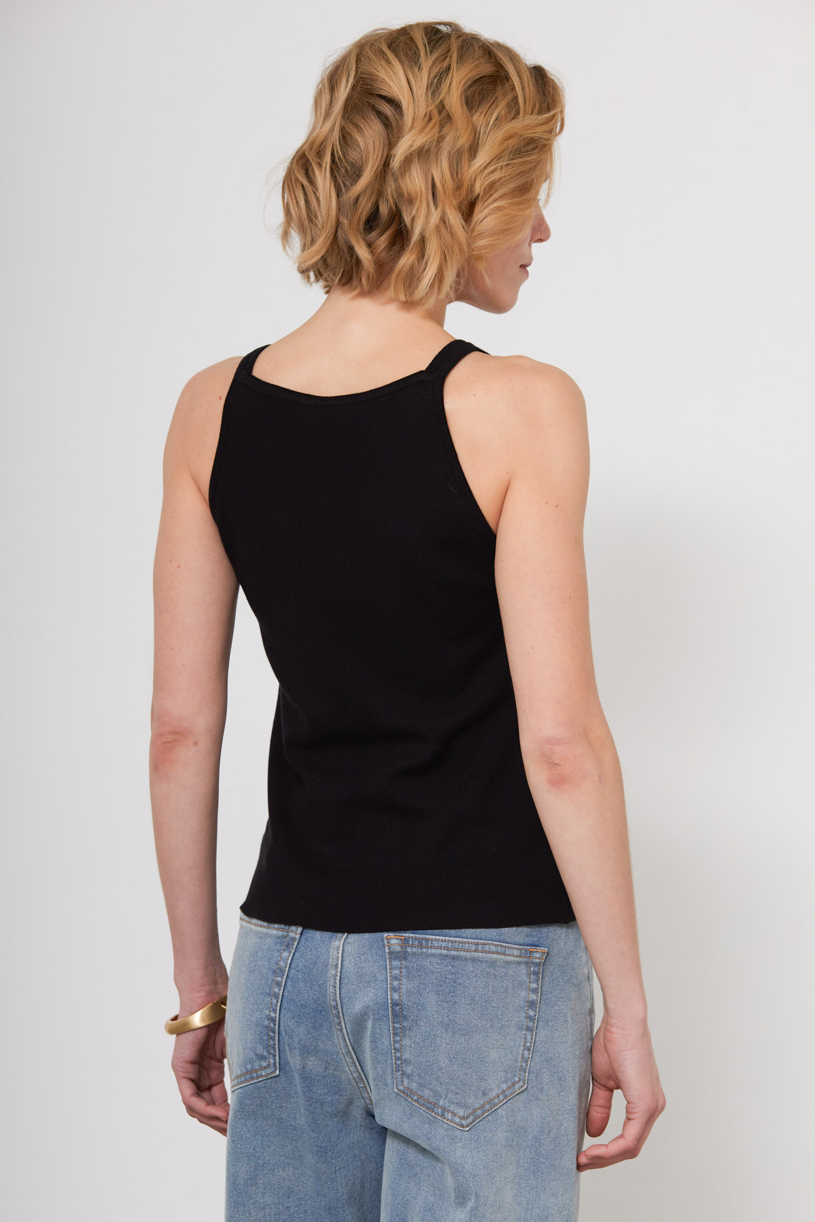 Топ из мягкого вязаного трикотажа на тонких бретелях.