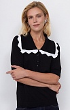 Джемпер из мягкого вязаного трикотажа с декором на воротнике.