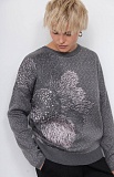 Джемпер жаккардовой вязки в елочку с рисунком в виде цветка.