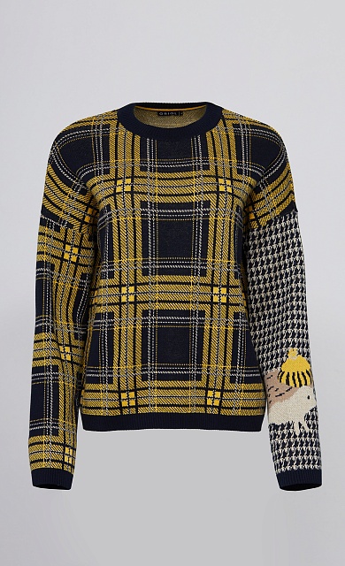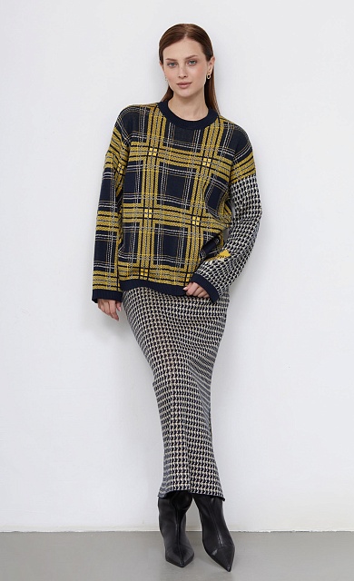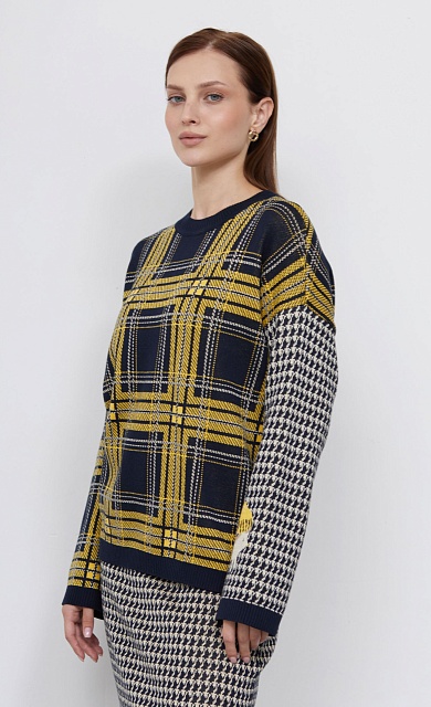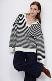 Джемпер-поло oversize из полушерстяного вязаного трикотажа в полоску.
