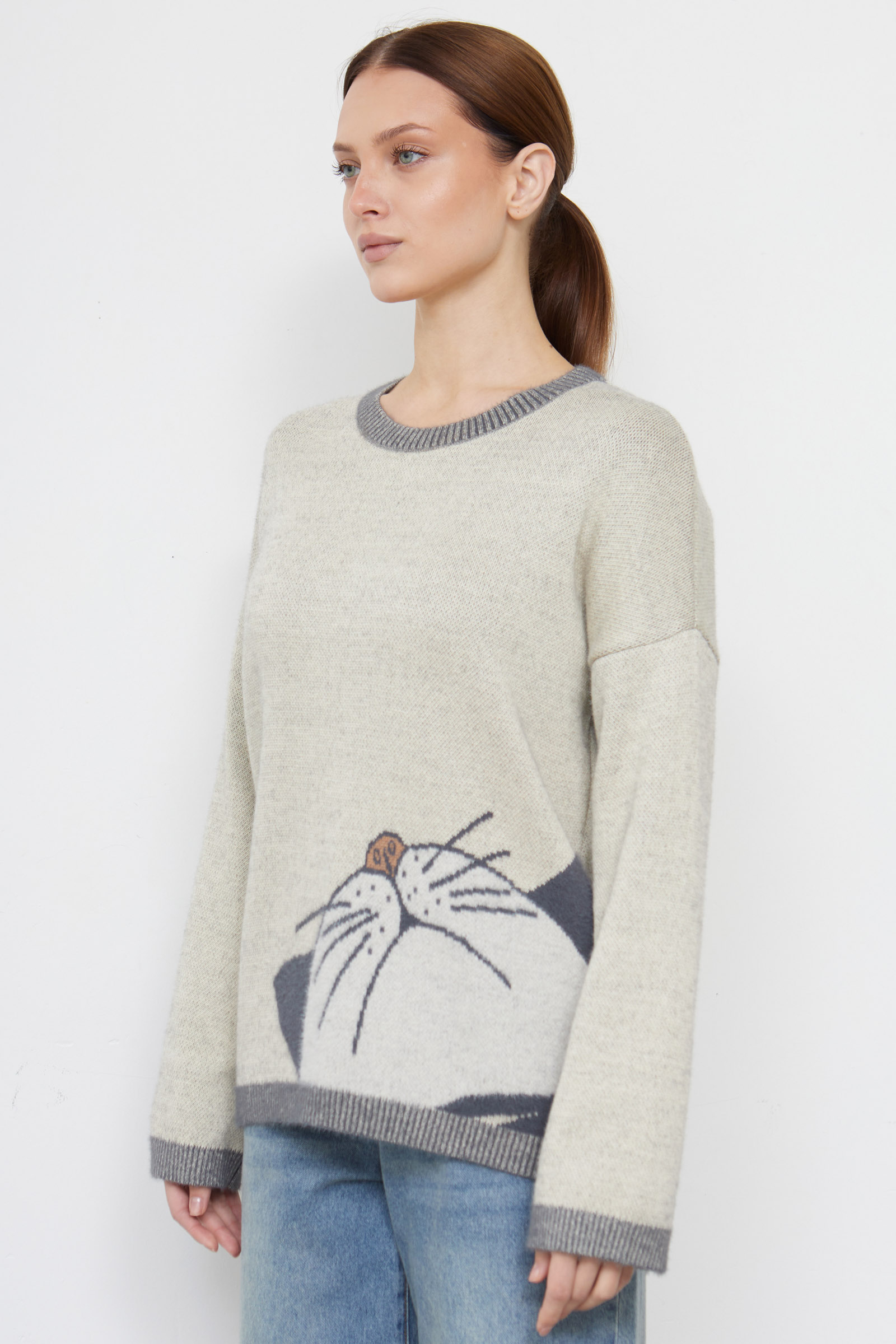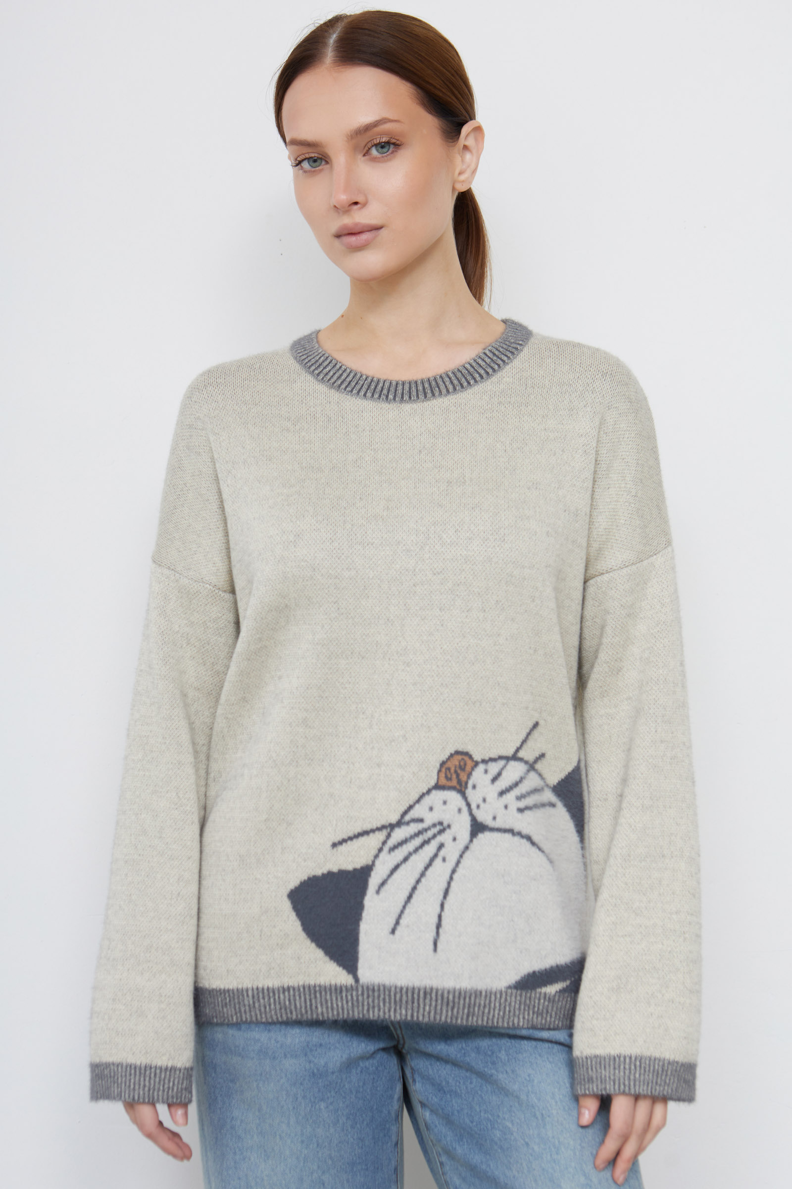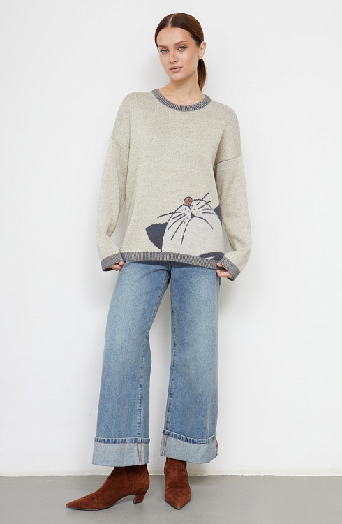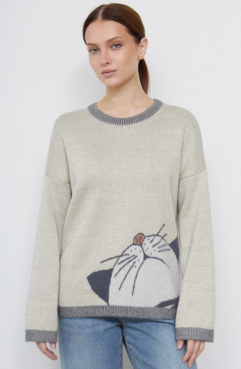 Джемпер из мягкого пушистого трикотажа жаккардовой вязки с фантазийным рисунком.