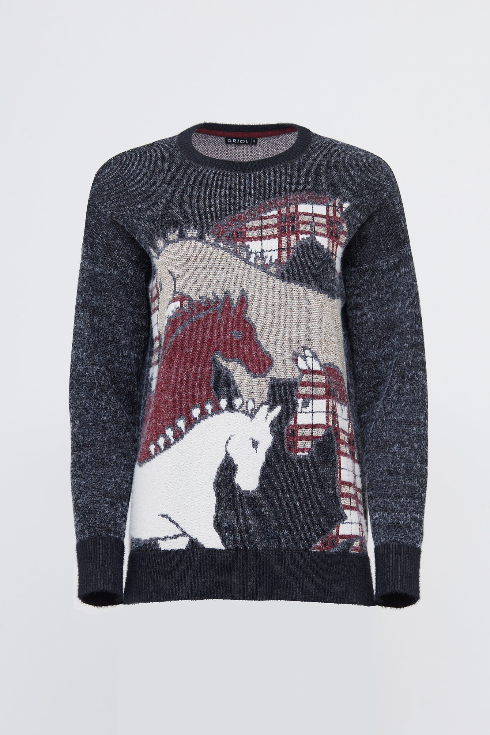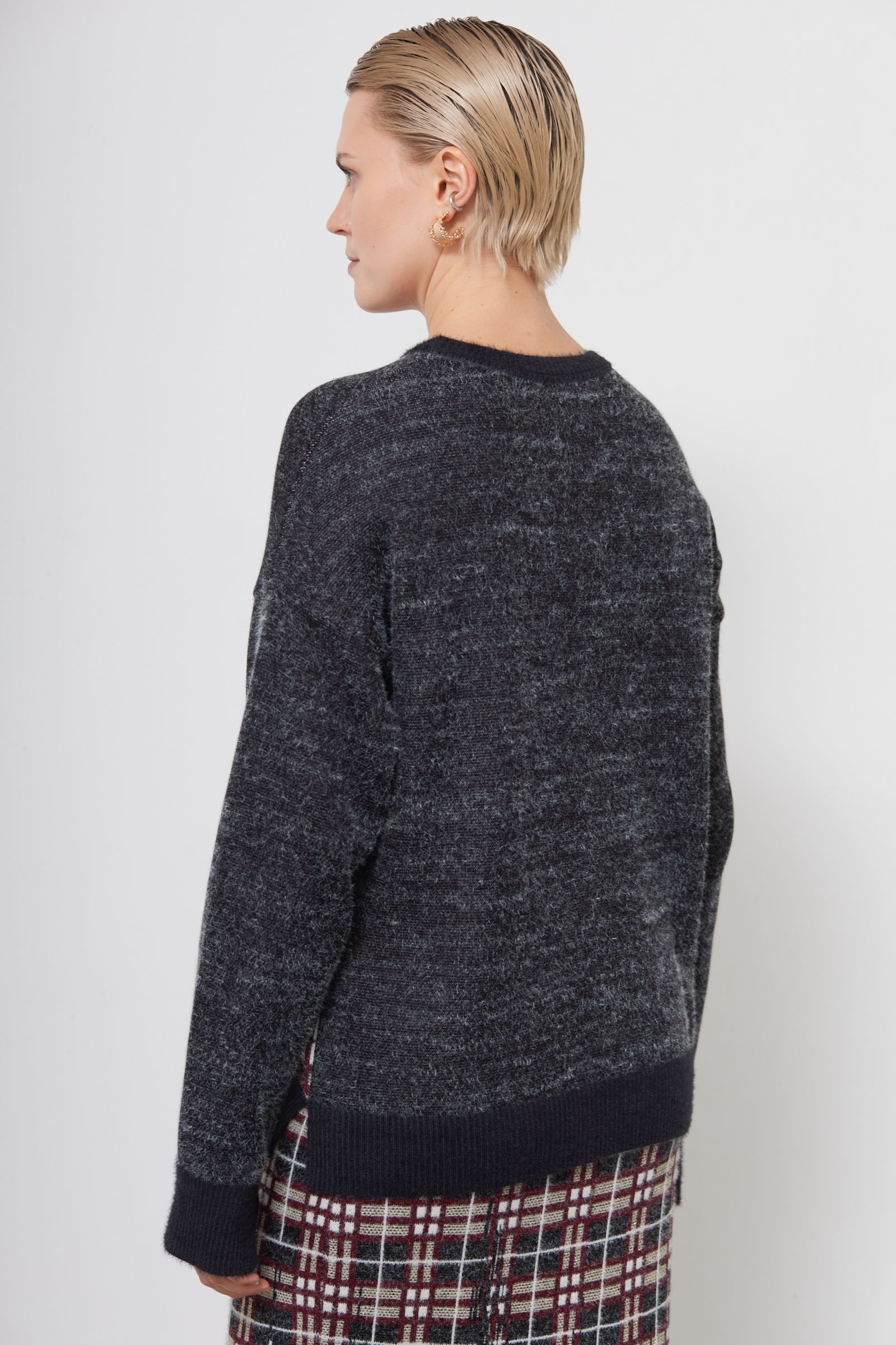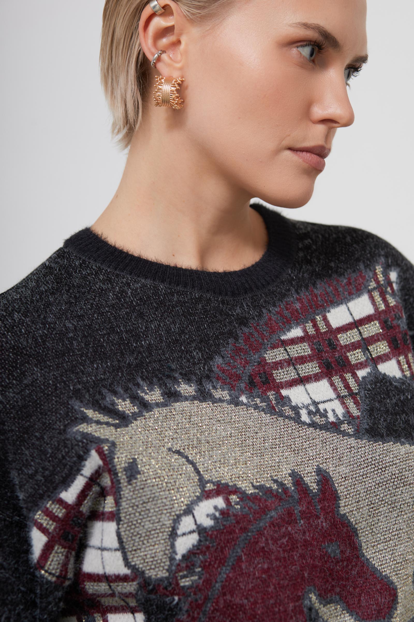 Джемпер oversize из мягкого пушистого трикотажа жаккардовой вязки с люрексом.