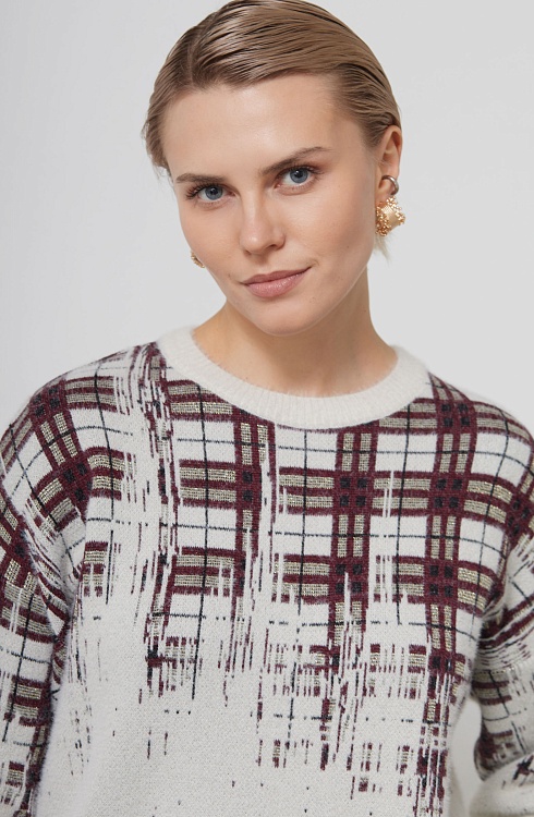 Джемпер из мягкого пушистого трикотажа жаккардовой вязки с люрексом.