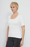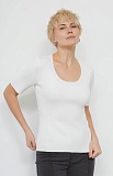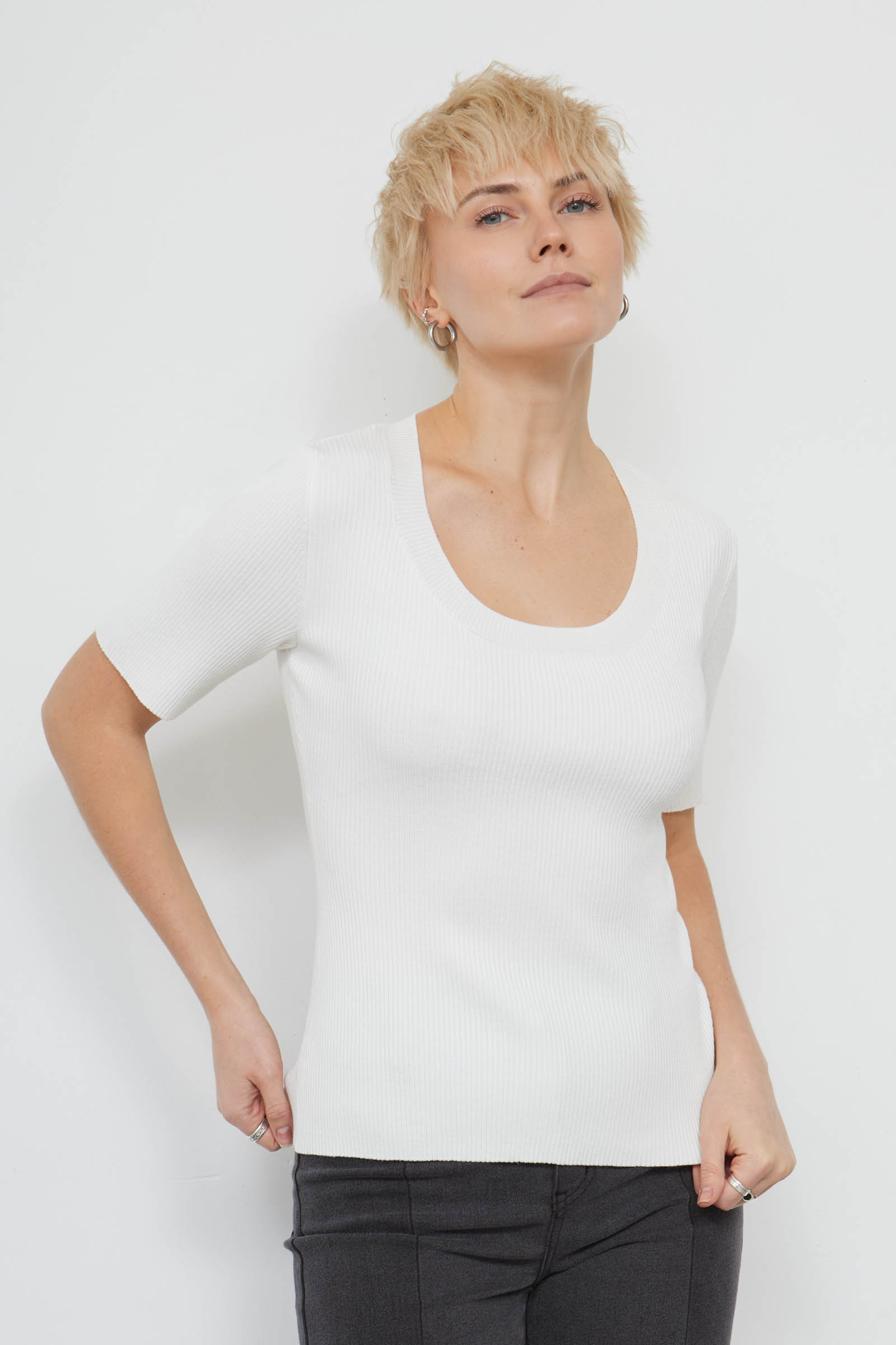 Облегающий джемпер из мягкого вискозного трикотажа в рубчик с короткими рукавами.
