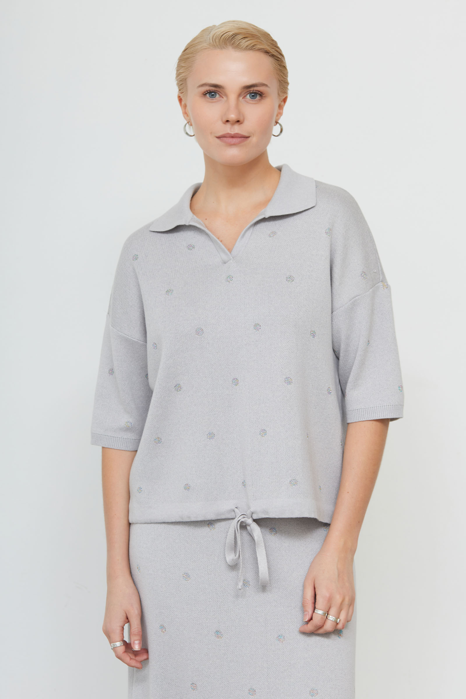 Джемпер-поло из мягкого вязаного трикотажа в горошек из люрекса.