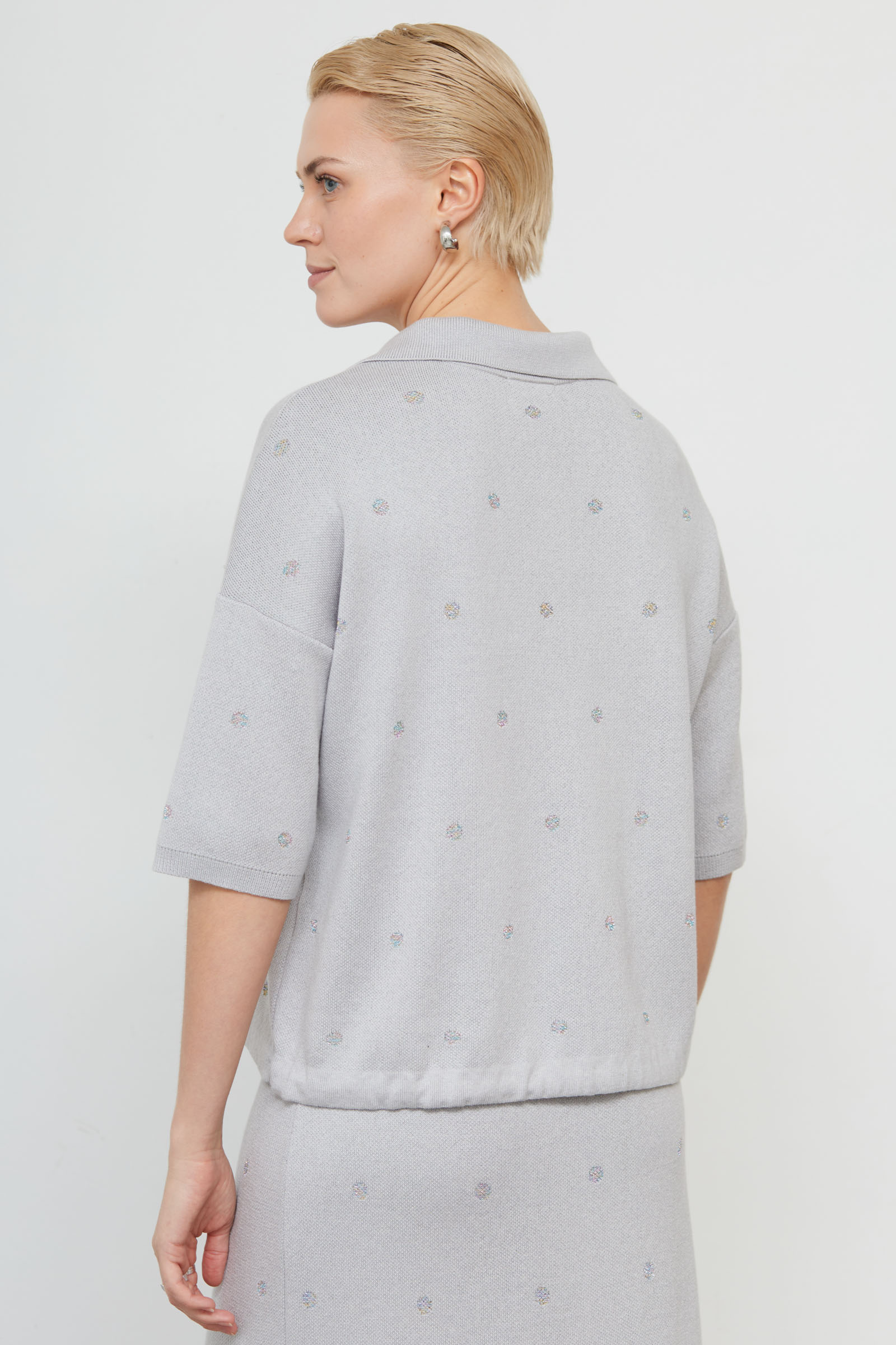 Джемпер-поло oversize из мягкого вязаного трикотажа в горошек из люрекса.