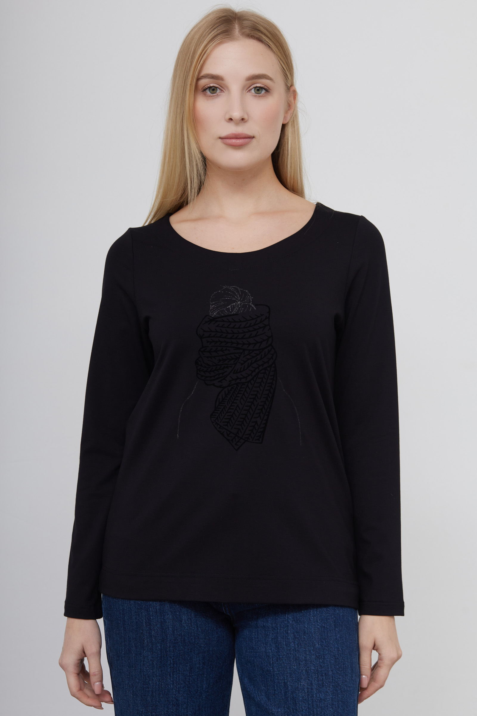 Лонгслив из вискозного трикотажа с флокированным принтом.