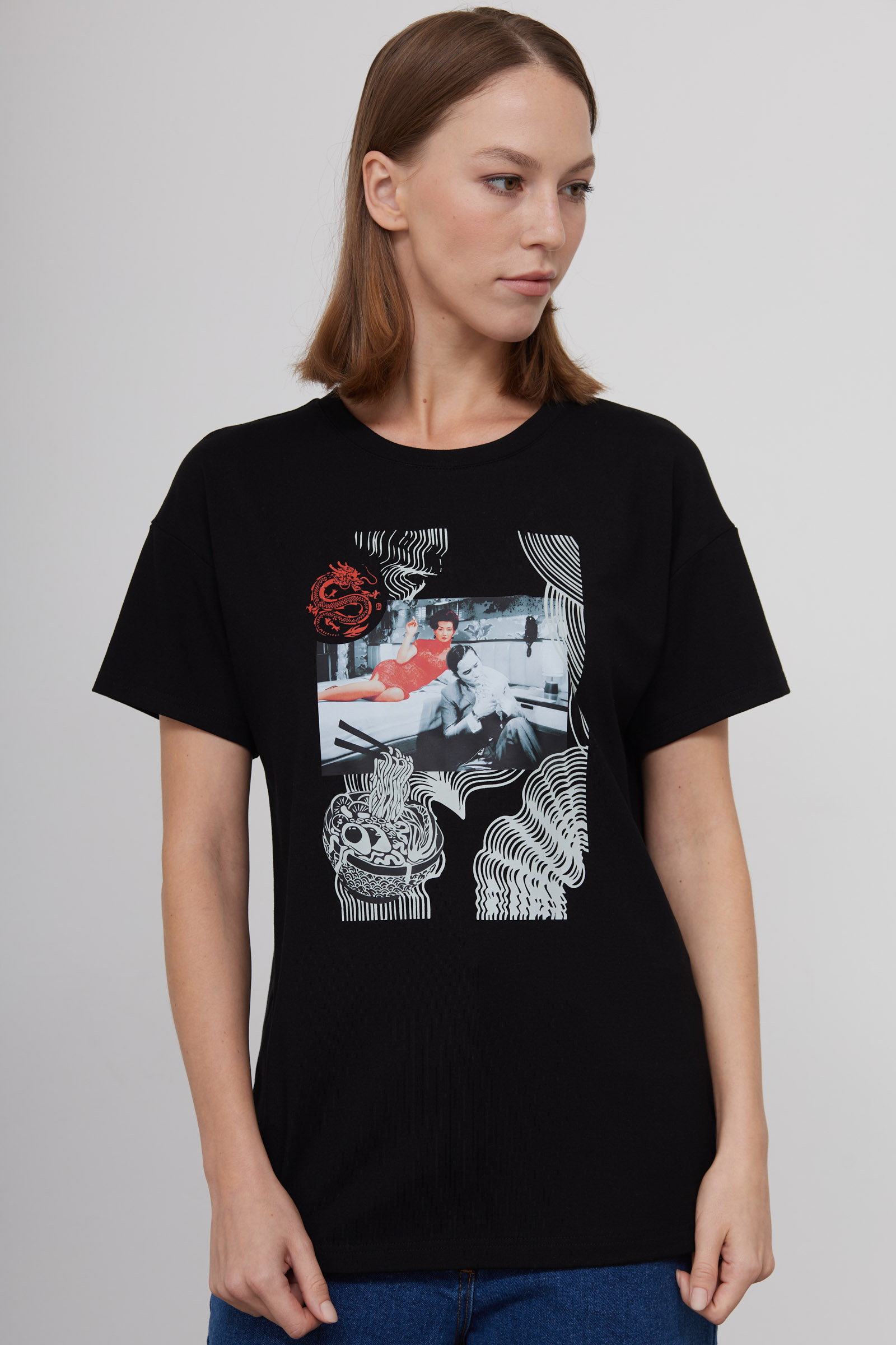 Футболка из мягкого хлопкового трикотажа с печатным принтом.