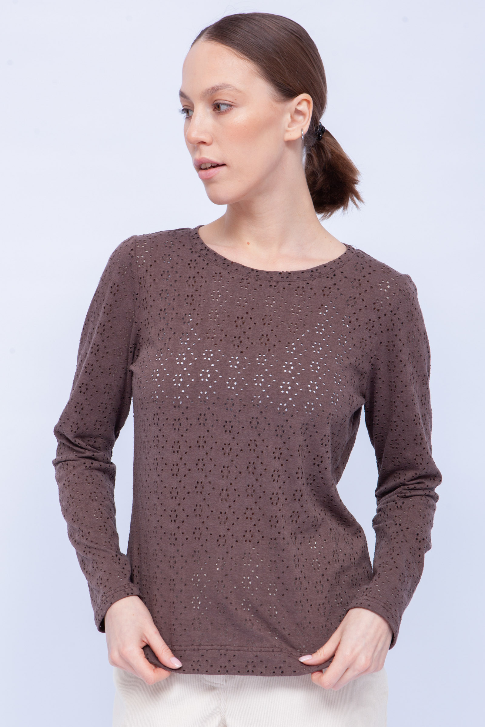 Базовый лонгслив из хлопкового трикотажа с декоративной перфорацией.