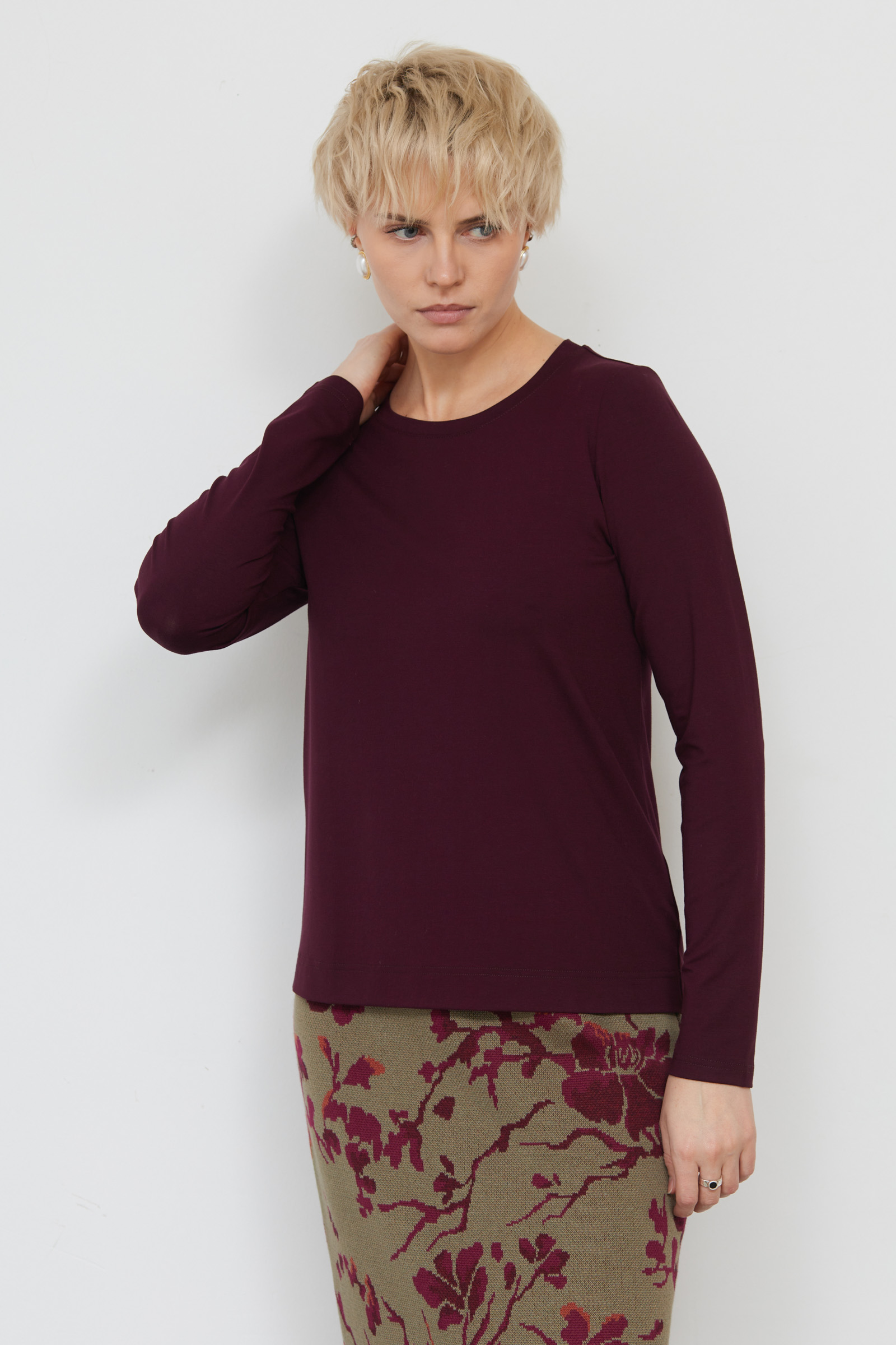Базовый лонгслив из мягкого вискозного трикотажа.