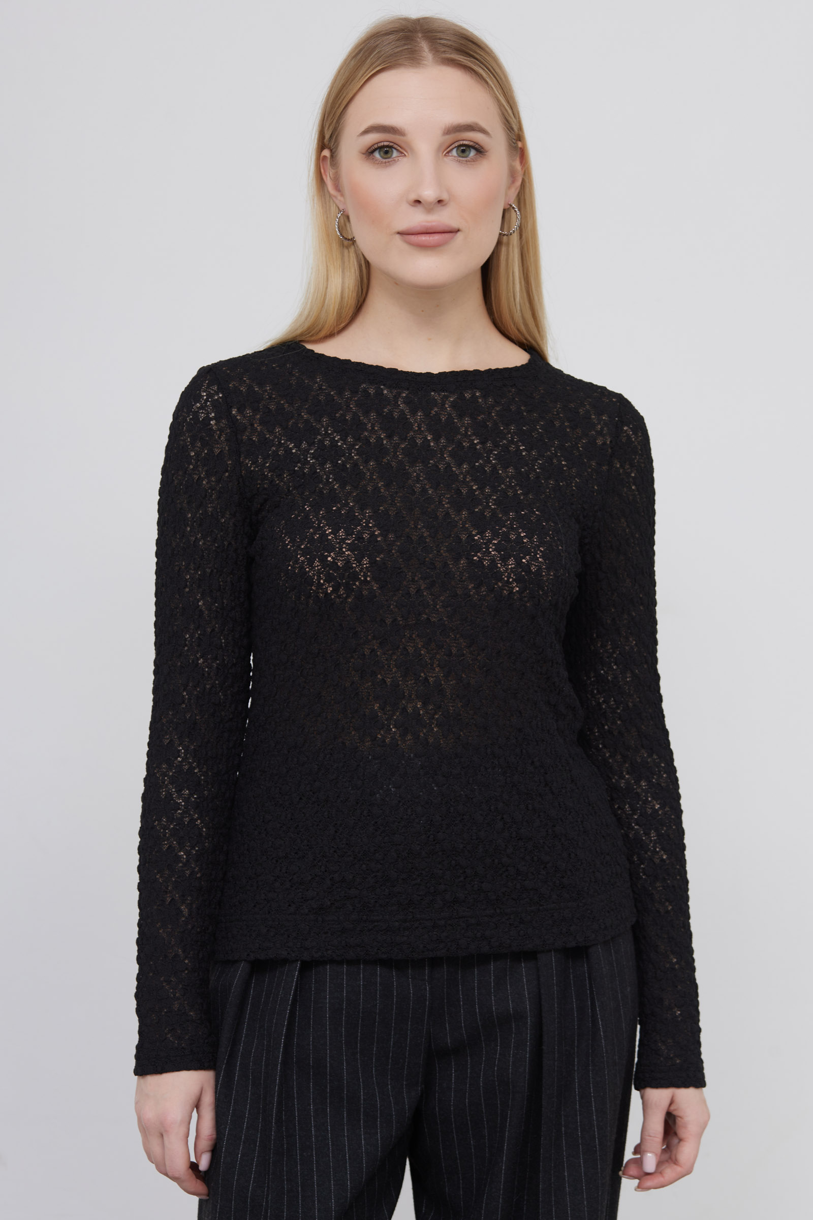 Лонгслив из эластичной кружевной ткани.