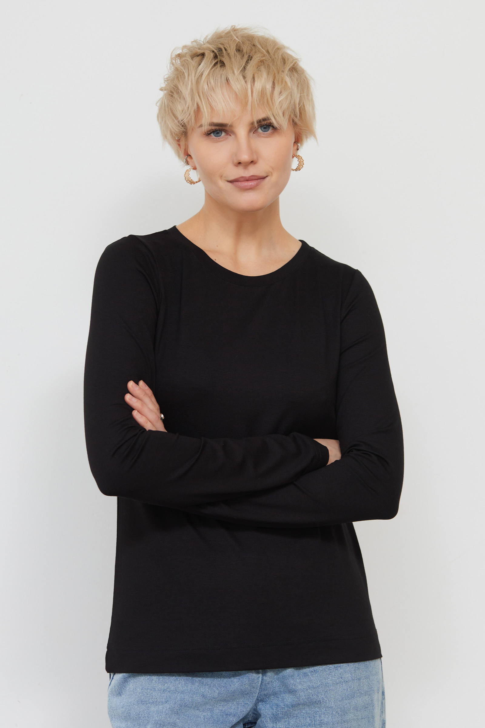 Базовый лонгслив из мягкого вискозного трикотажа.