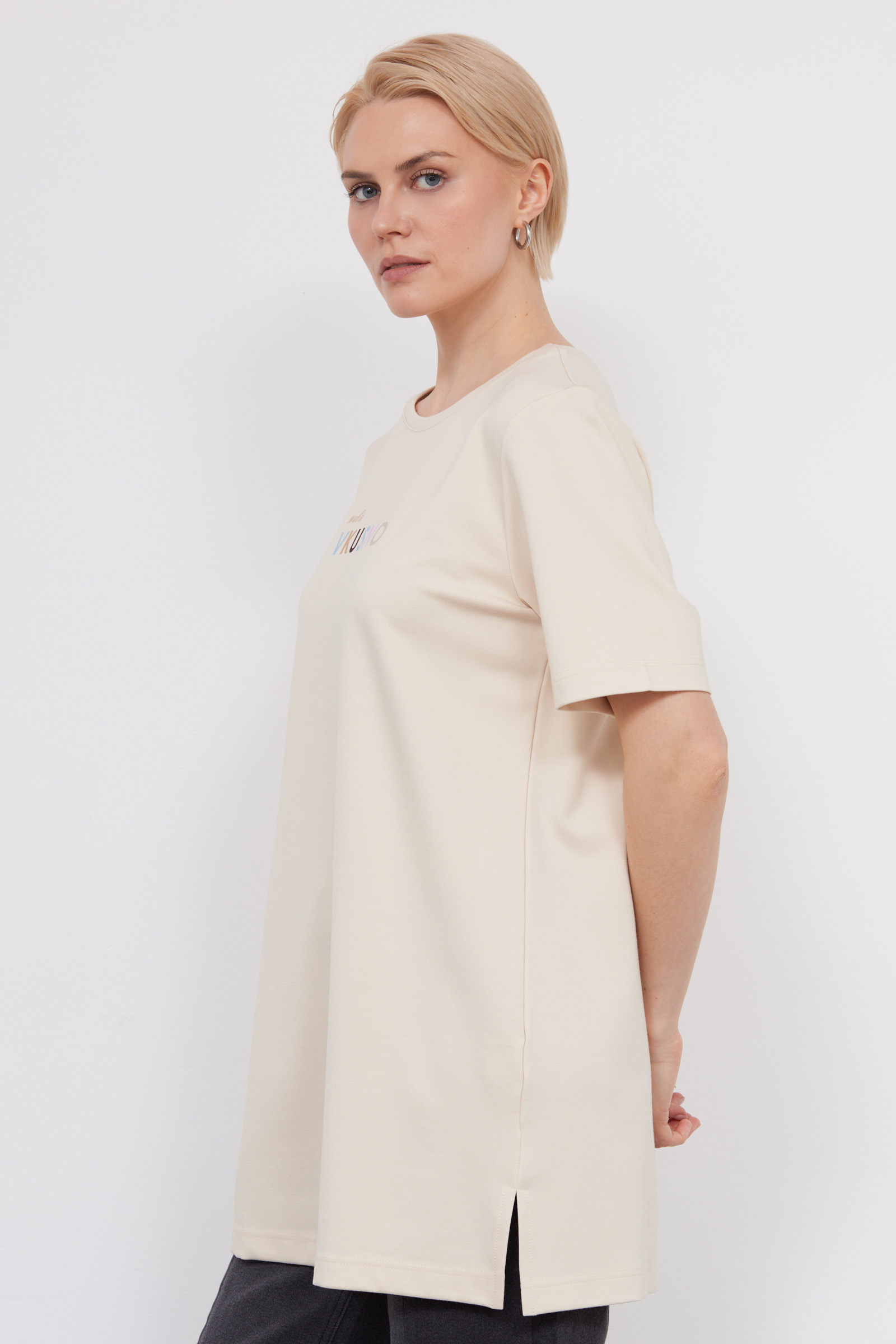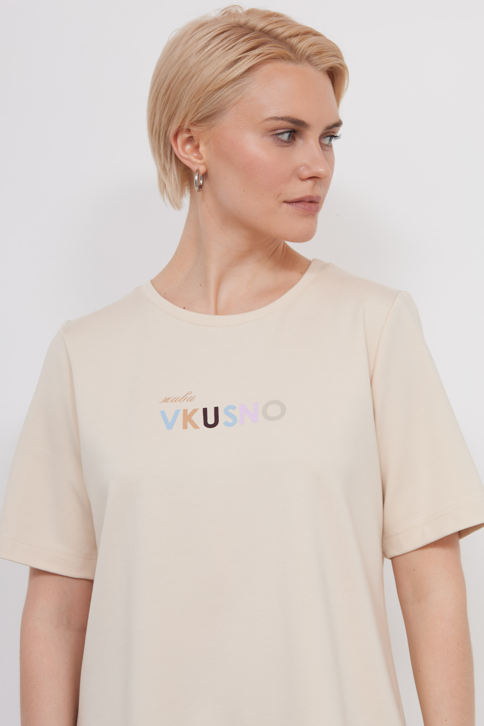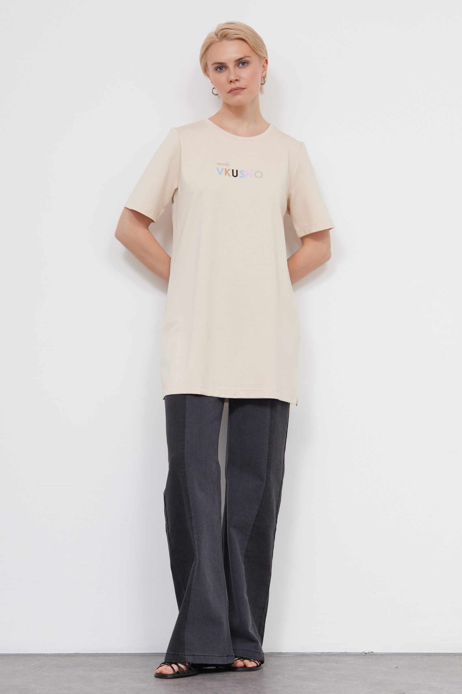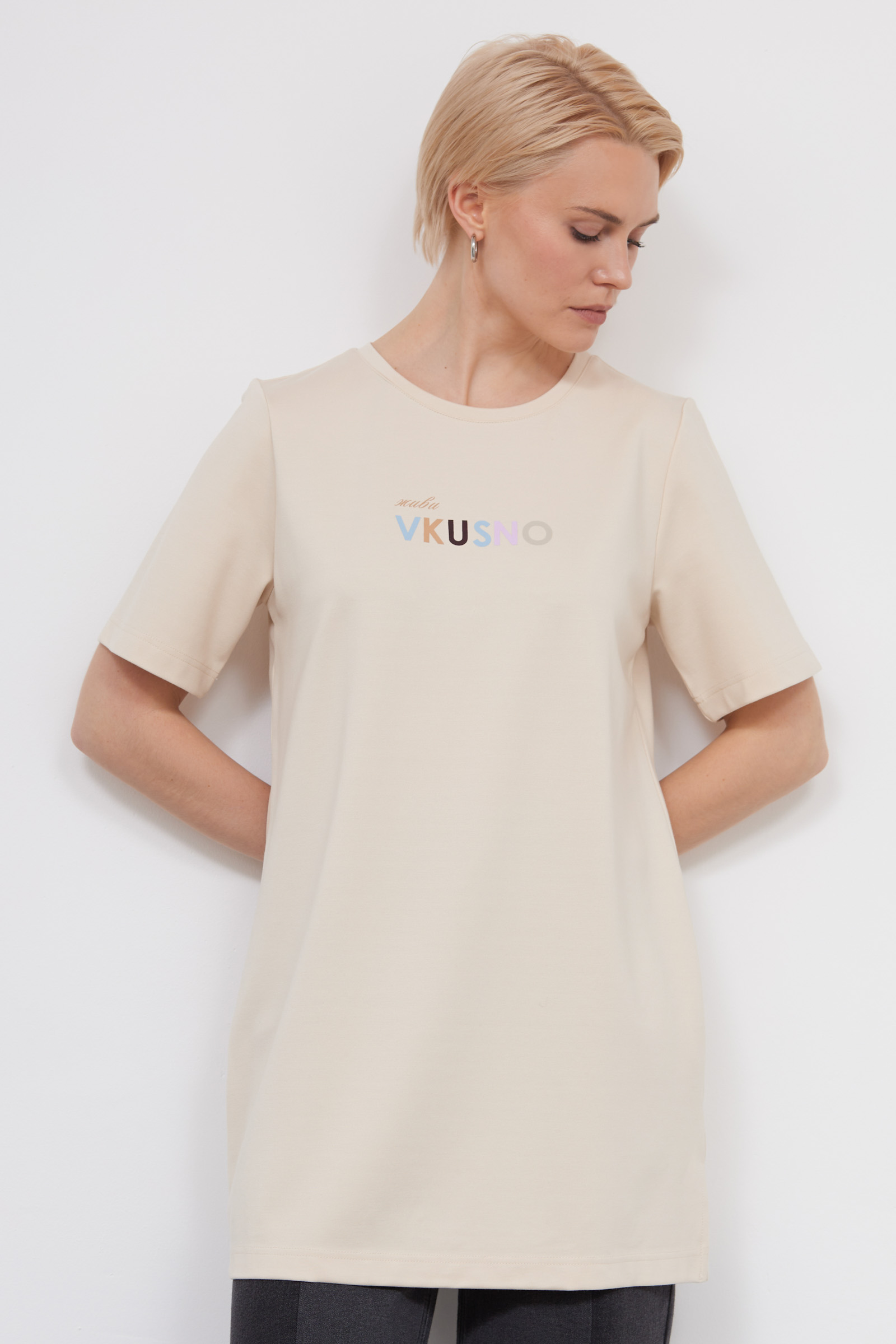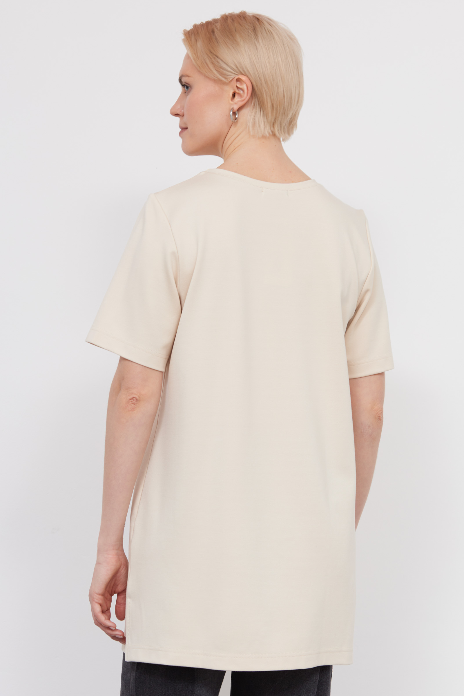 Удлиненная футболка из тонкого вискозного неопрена с печатным принтом.