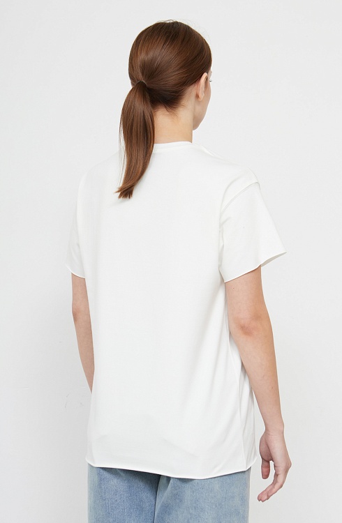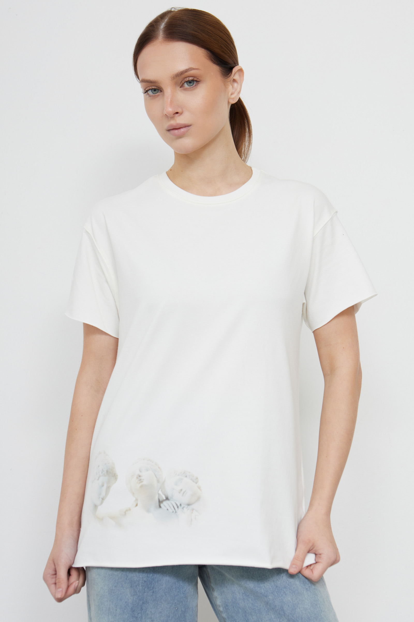 Футболка oversize из мягкого хлопкового трикотажа с необработанными краями и печатным принтом.