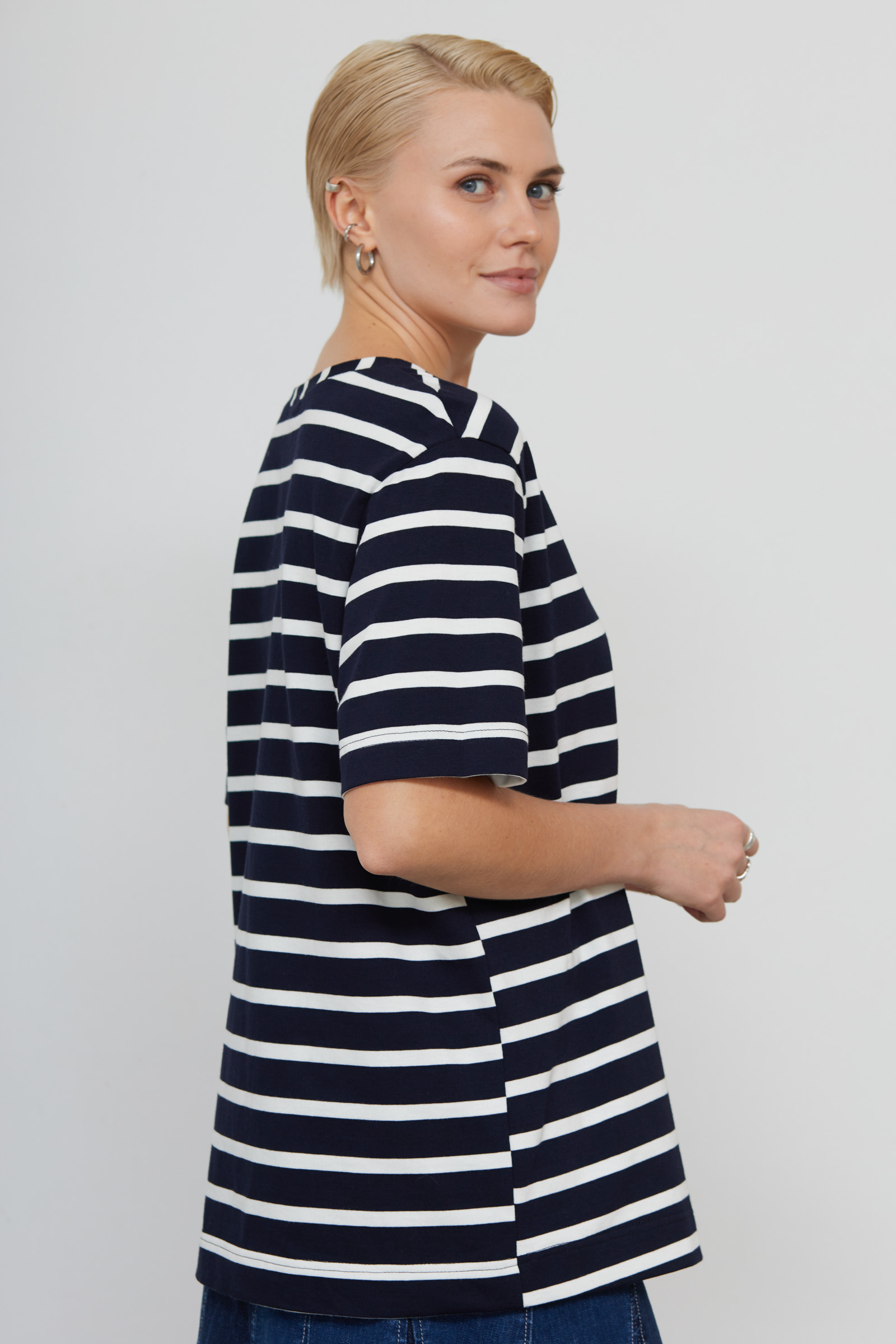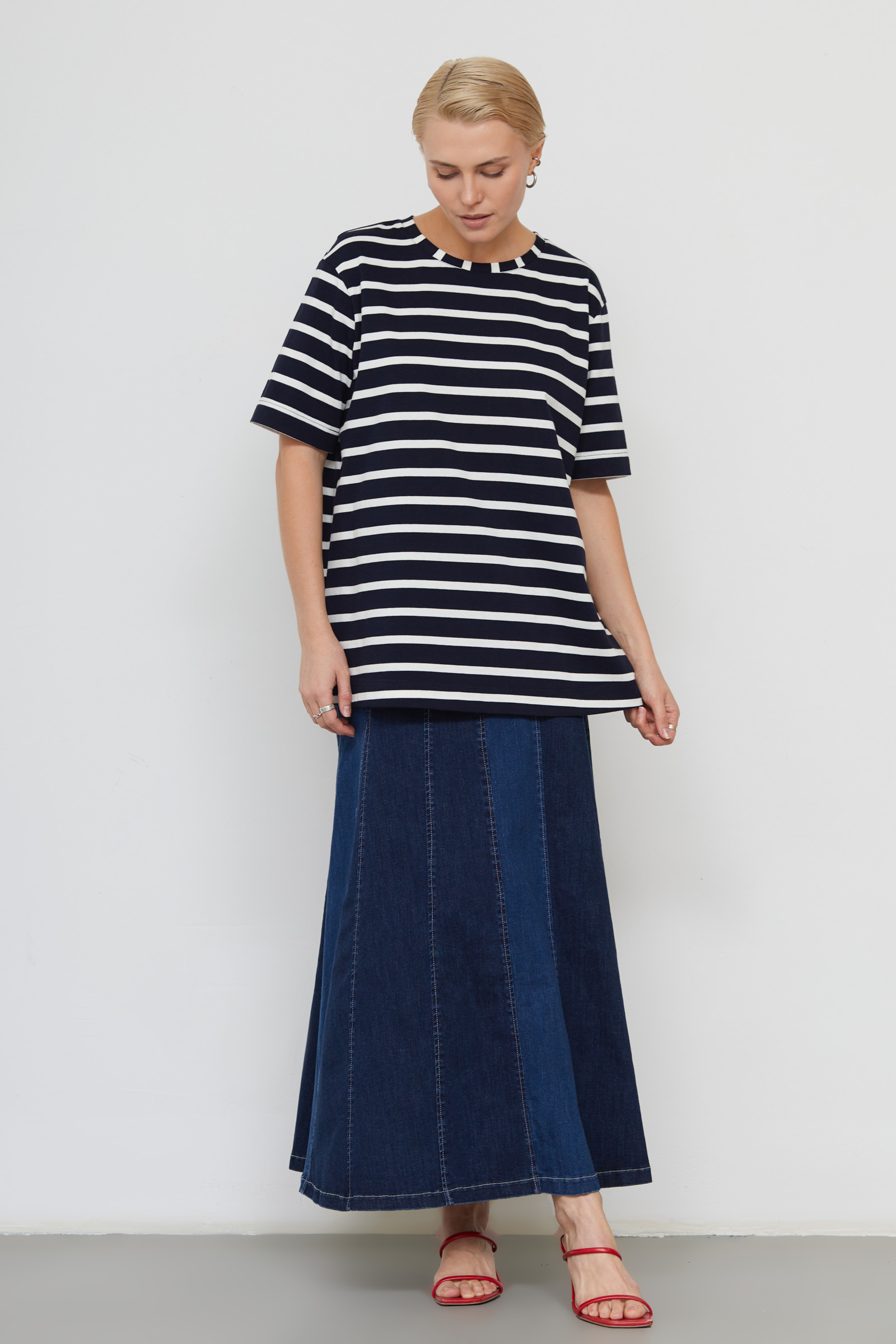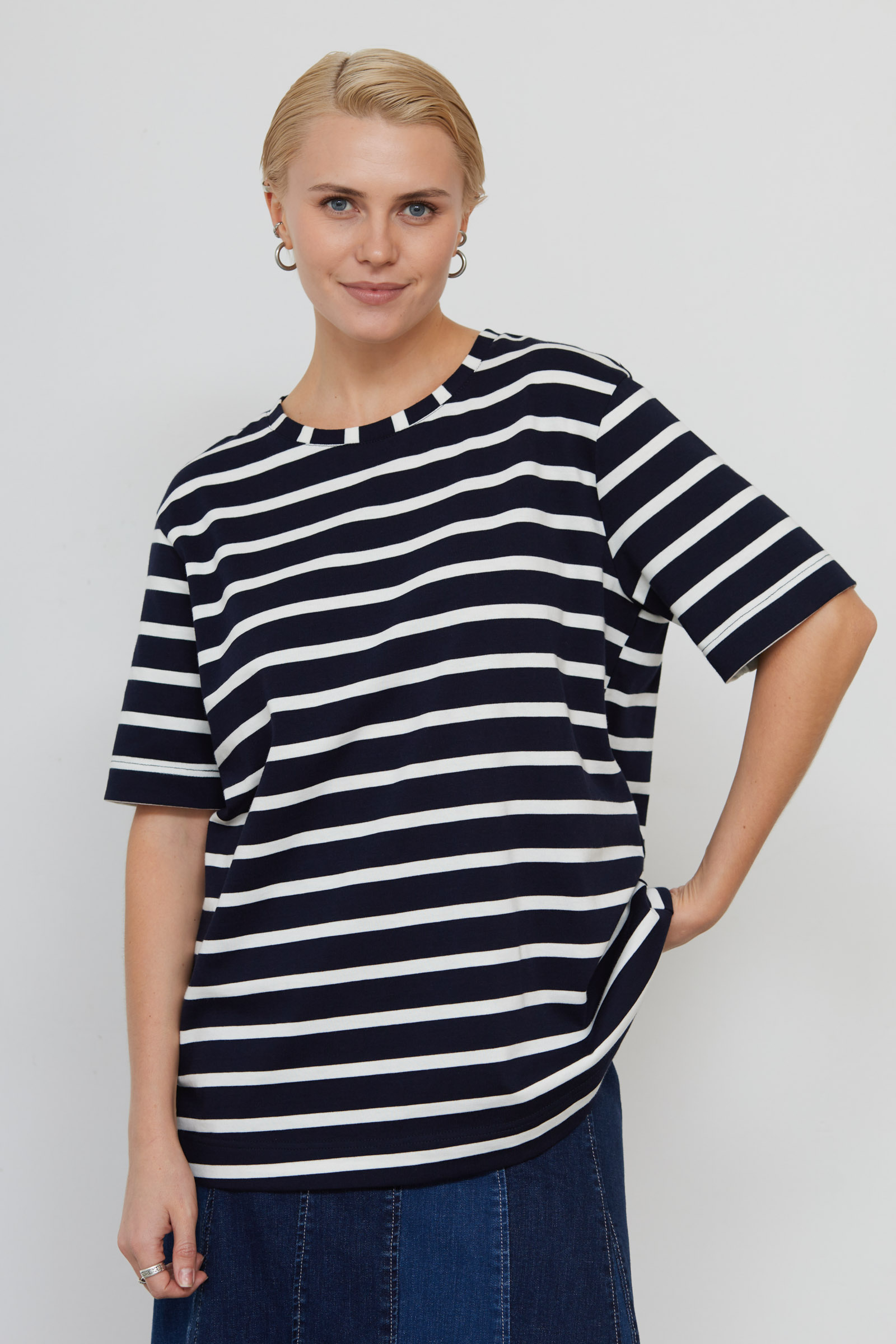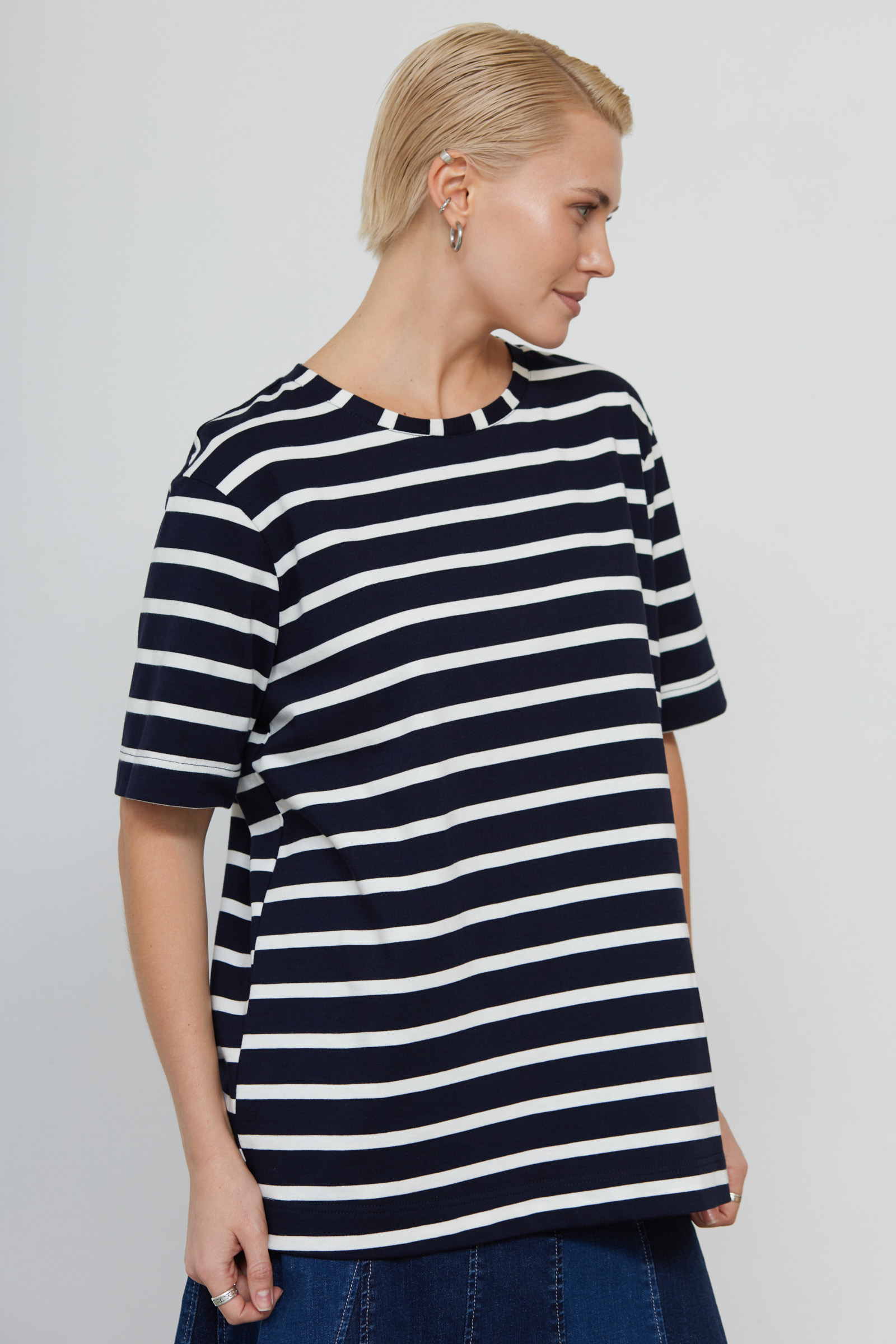 Футболка oversize из мягкого хлопкового трикотажа в полоску.