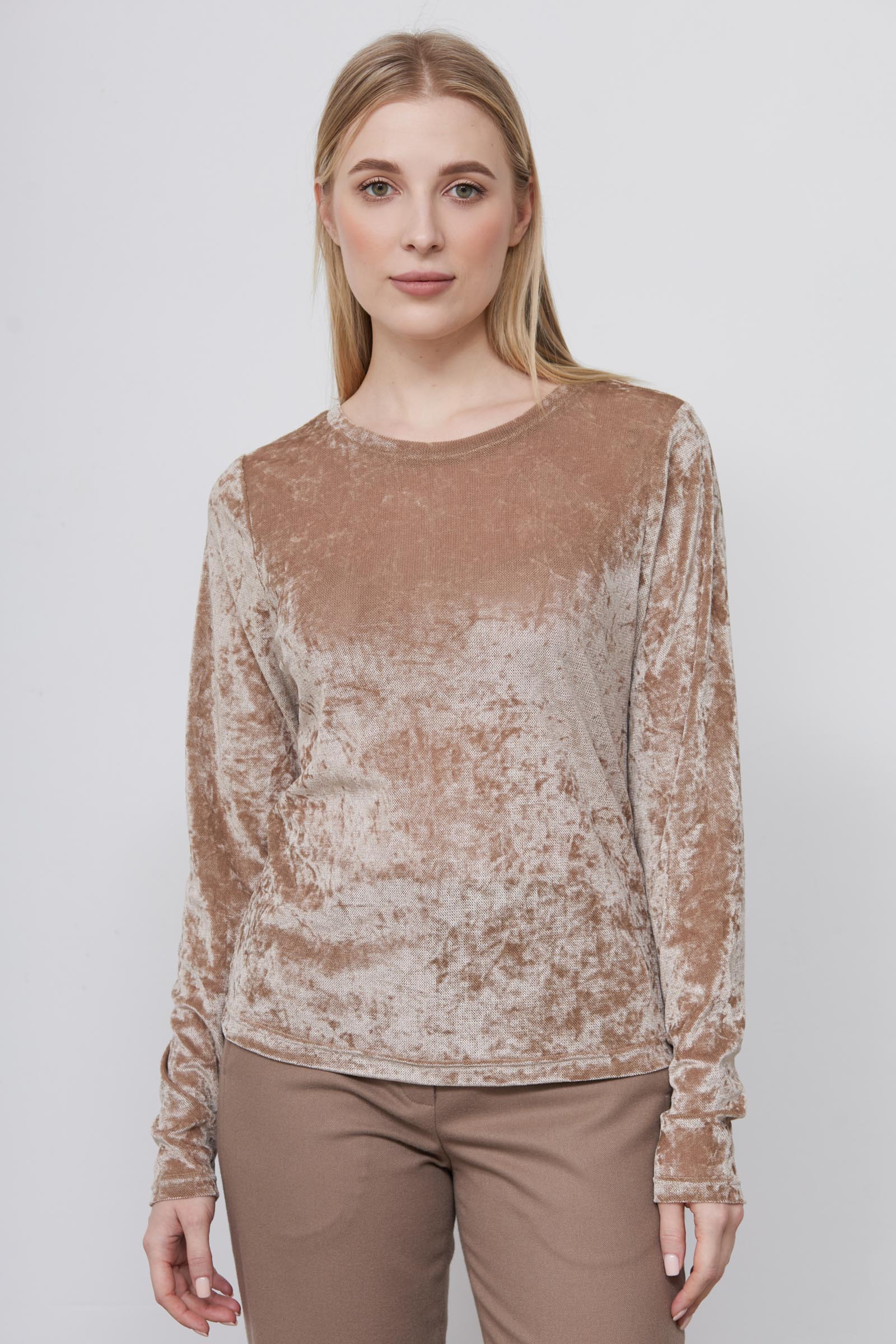Лонгслив из бархата с жатым эффектом.