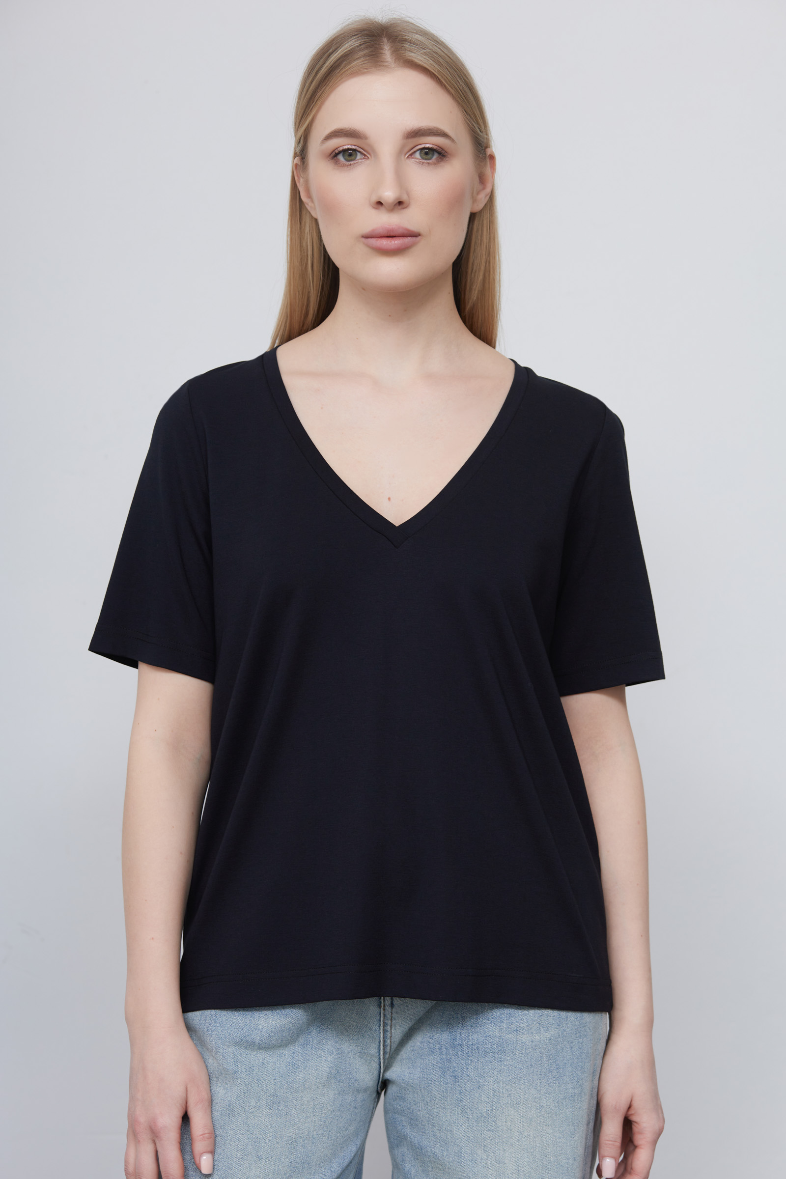 Футболка oversize из мягкой поливискозы с V-образным вырезом.