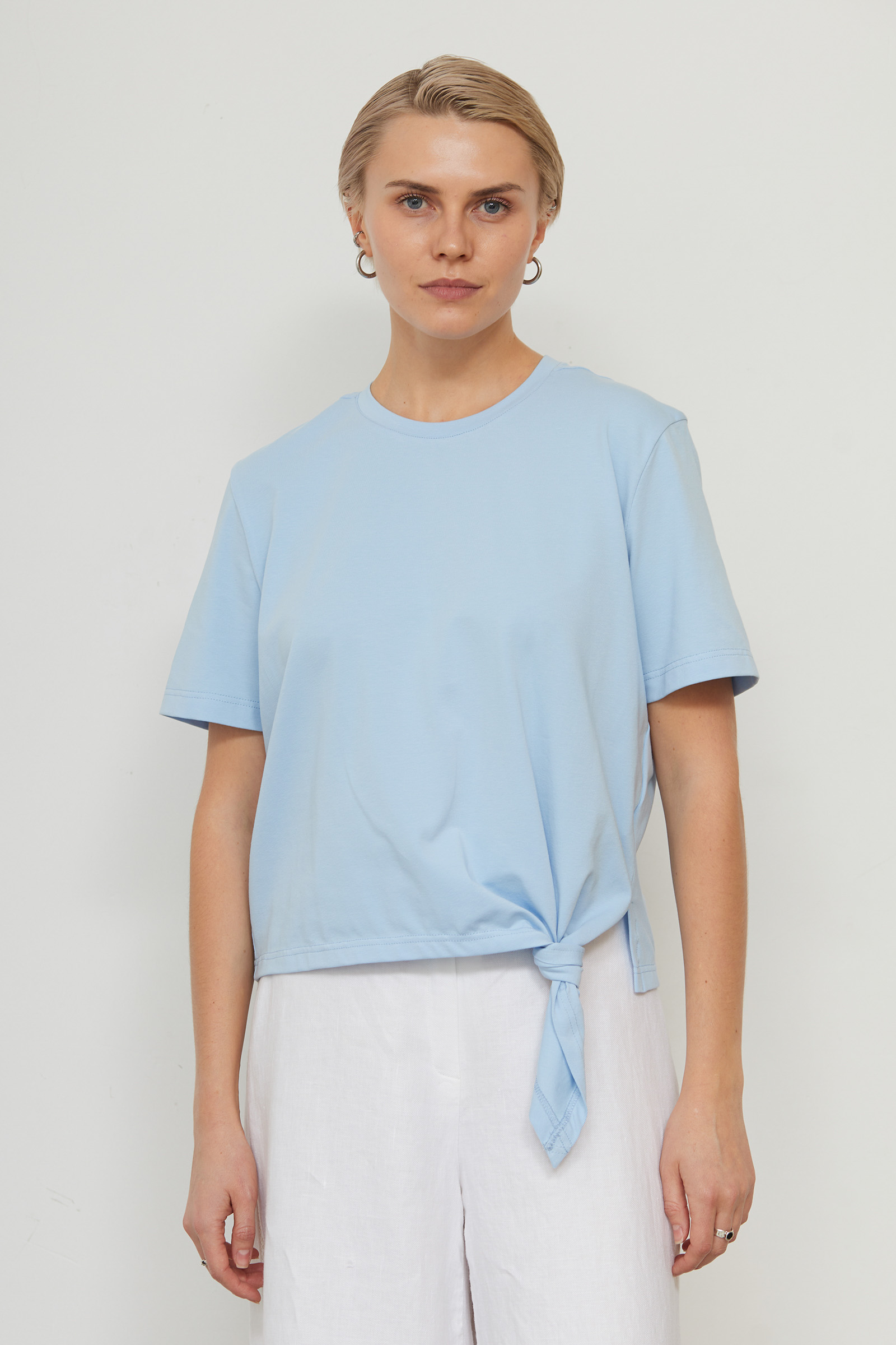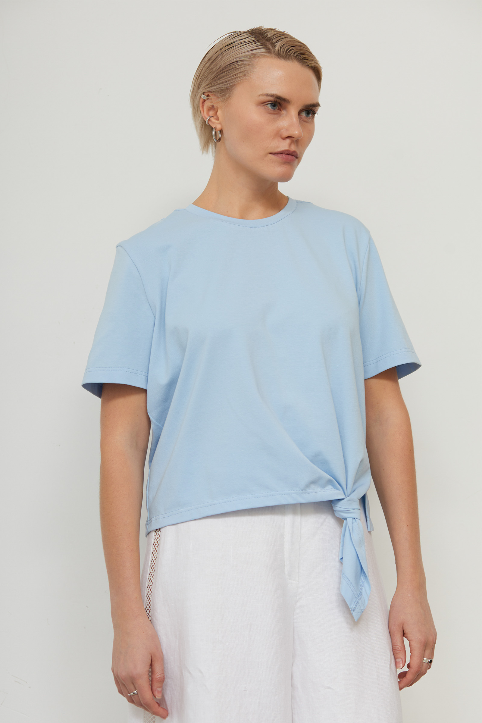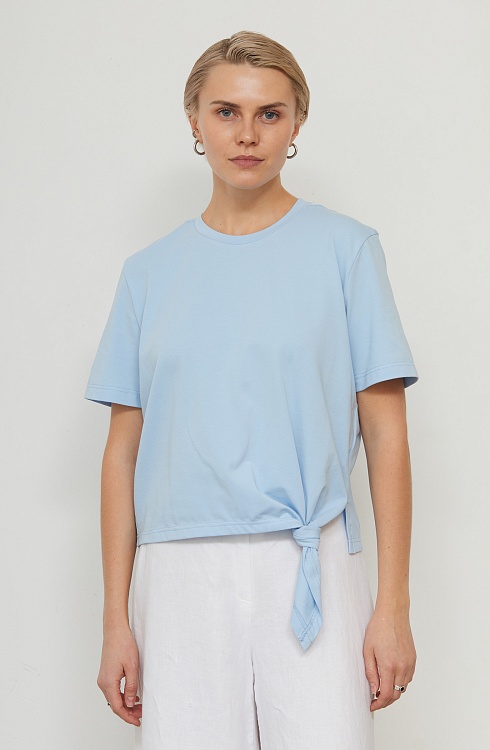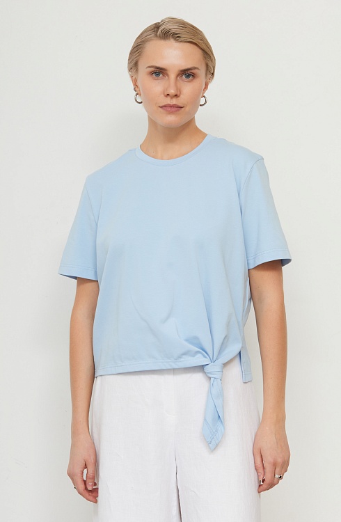 Укороченная футболка из мягкого хлопкового трикотажа с декоративным узлом по низу.