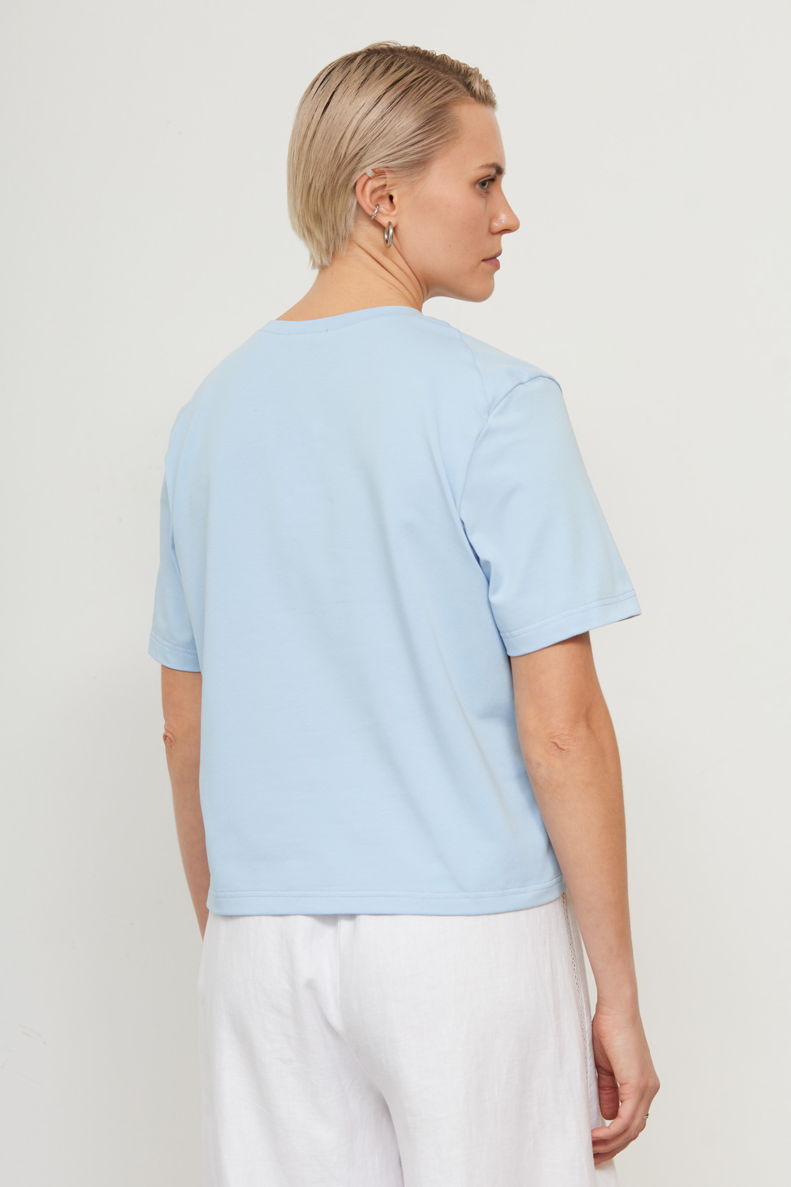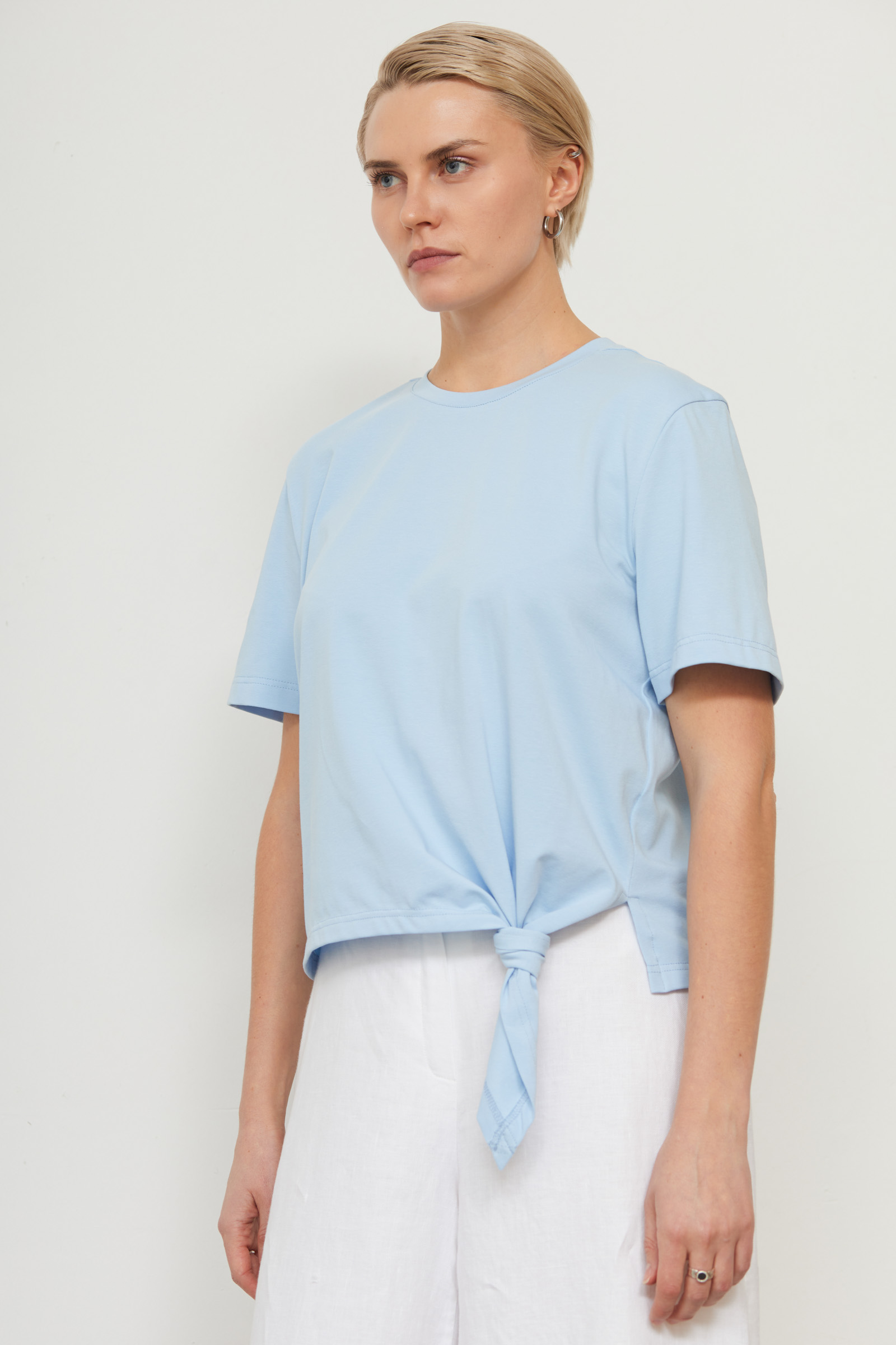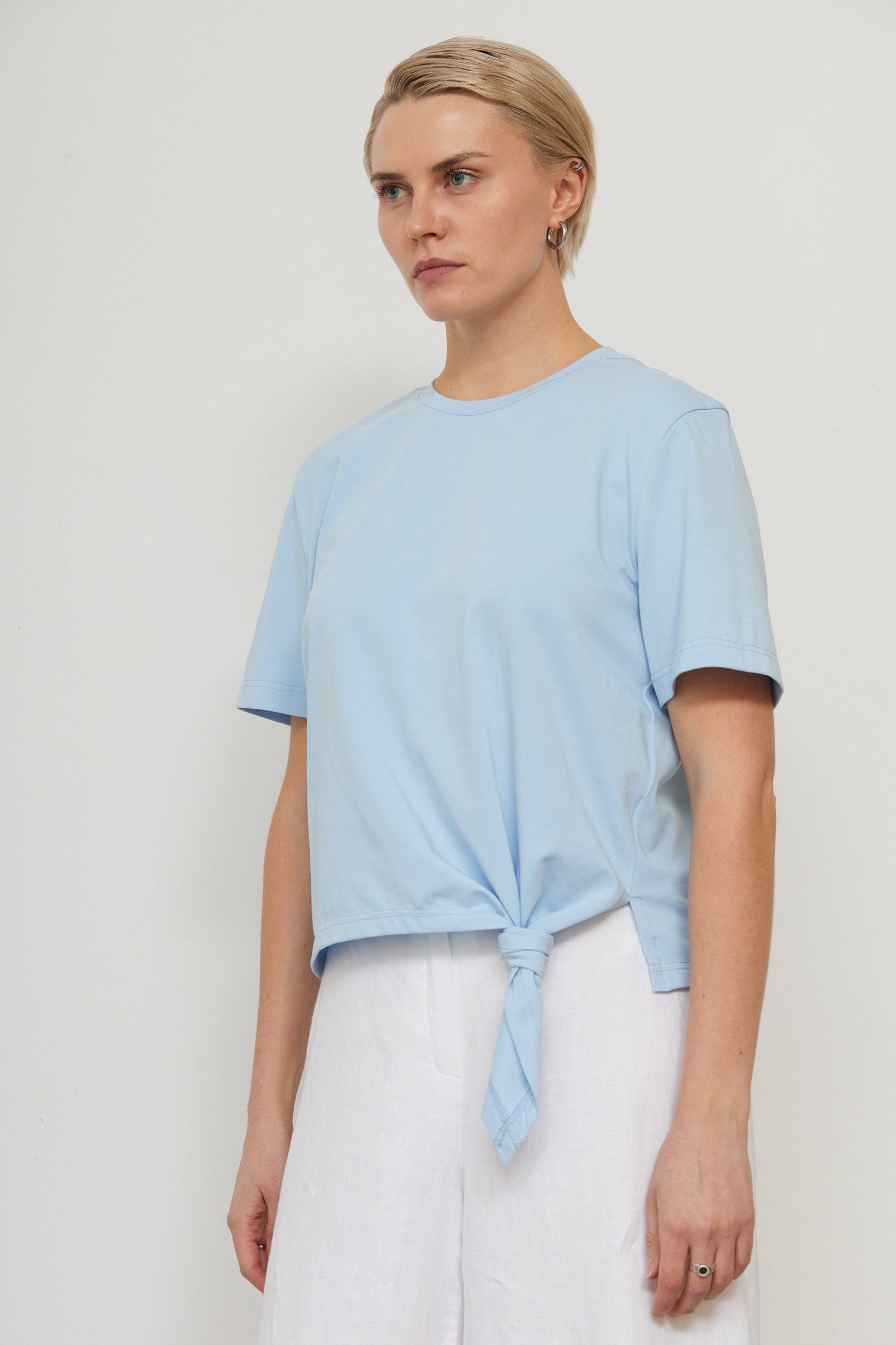 Укороченная футболка из мягкого хлопкового трикотажа с декоративным узлом по низу.