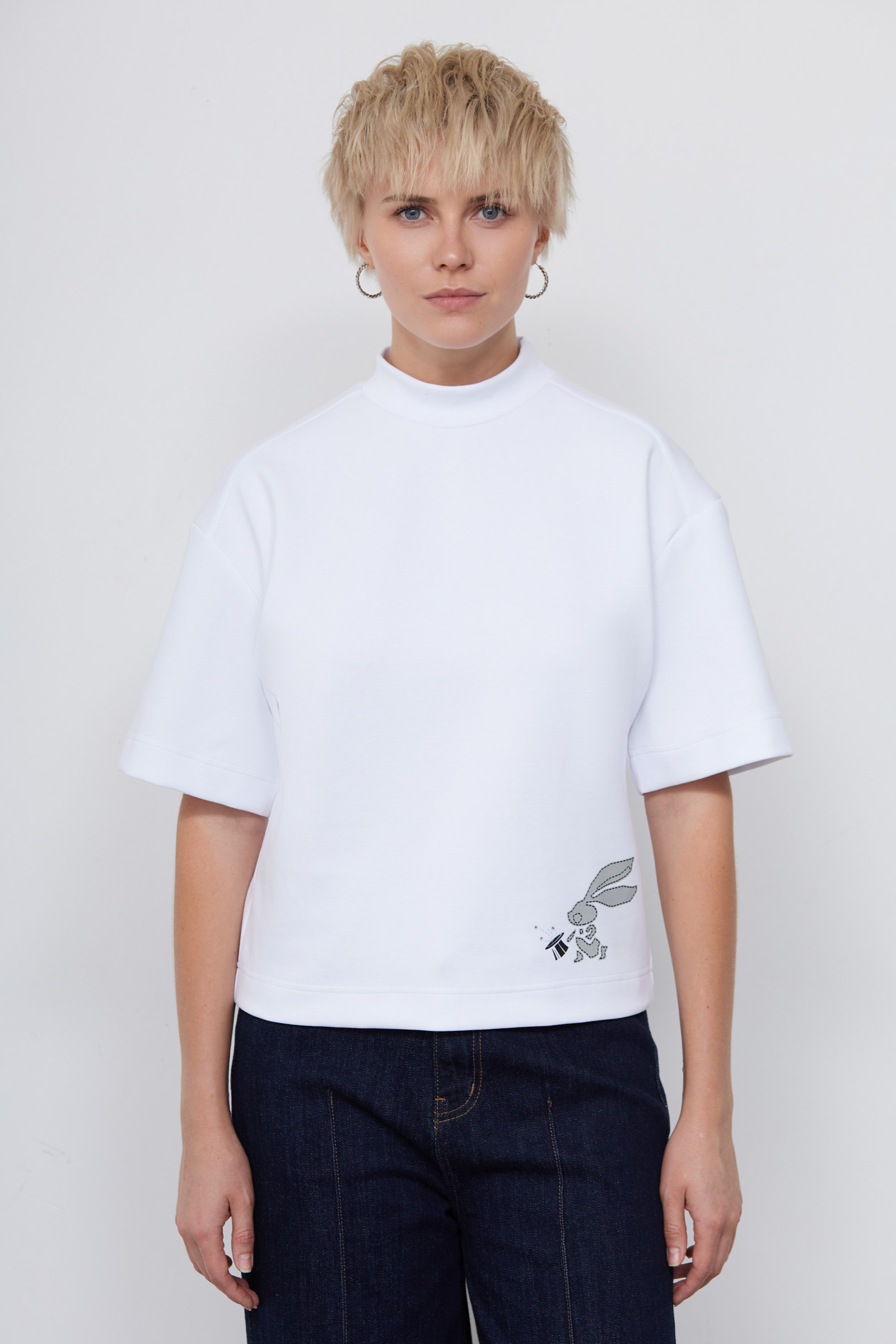 Футболка oversize из плотного хлопка с высоким воротником и печатным принтом.