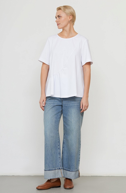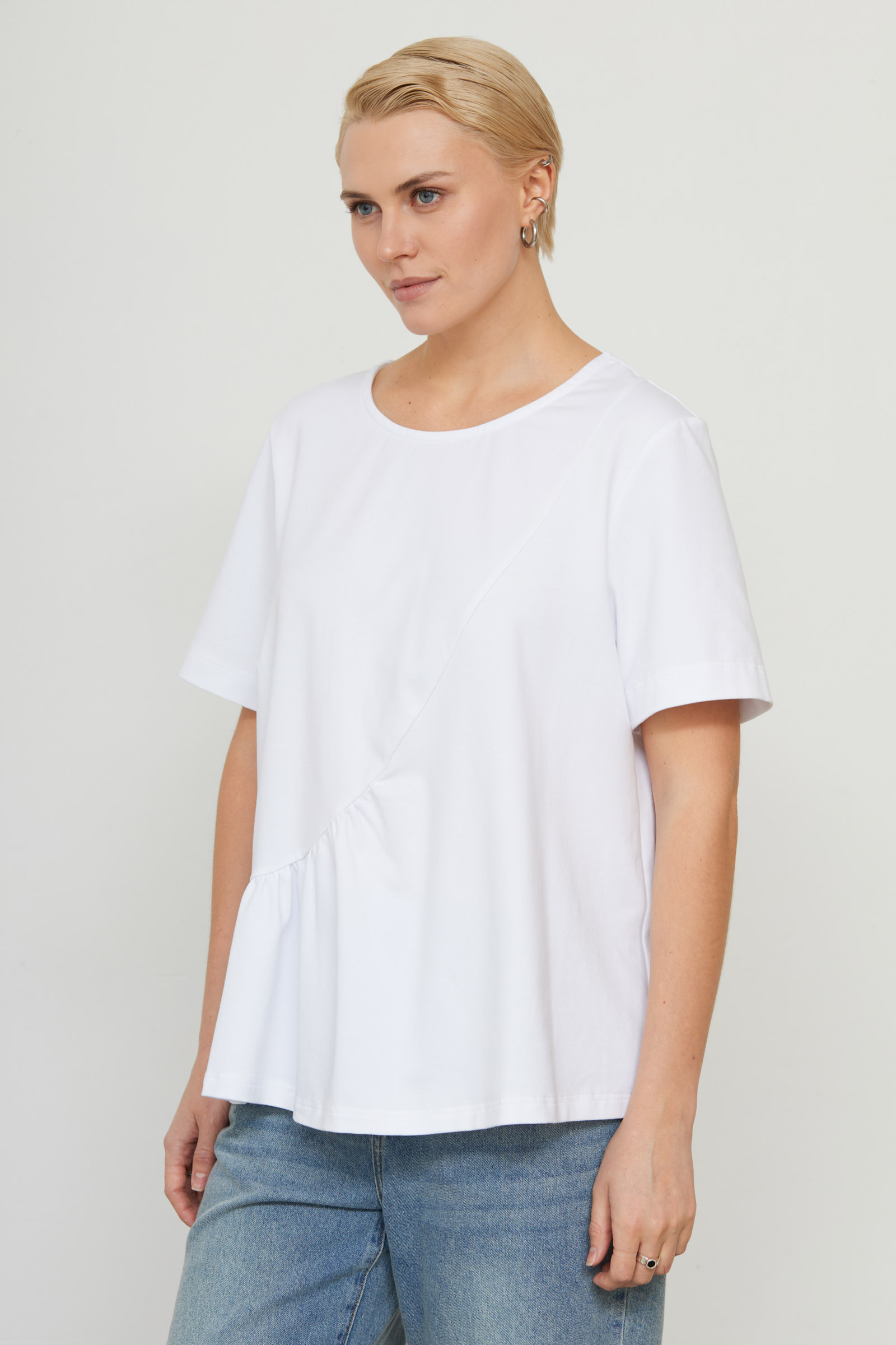 Футболка oversize с асимметричной отрезной линией и сборкой.