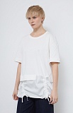 Комбинированная футболка оверсайз из плотного хлопкового трикотажа и текстиля с декоративной сборкой.