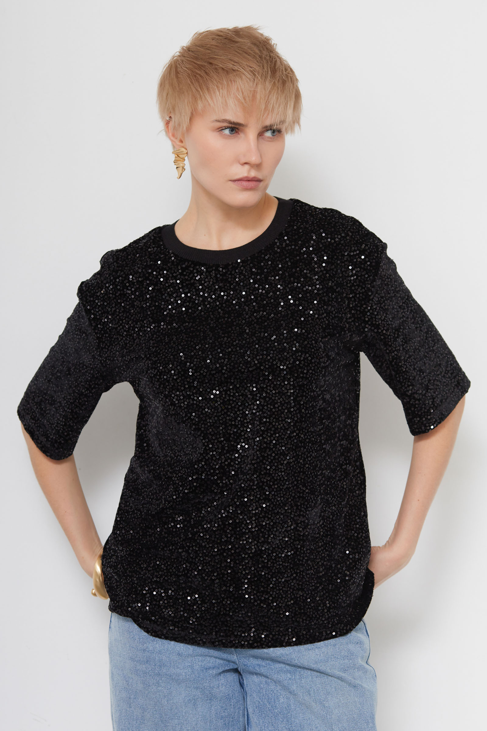 Футболка из бархата с пайетками