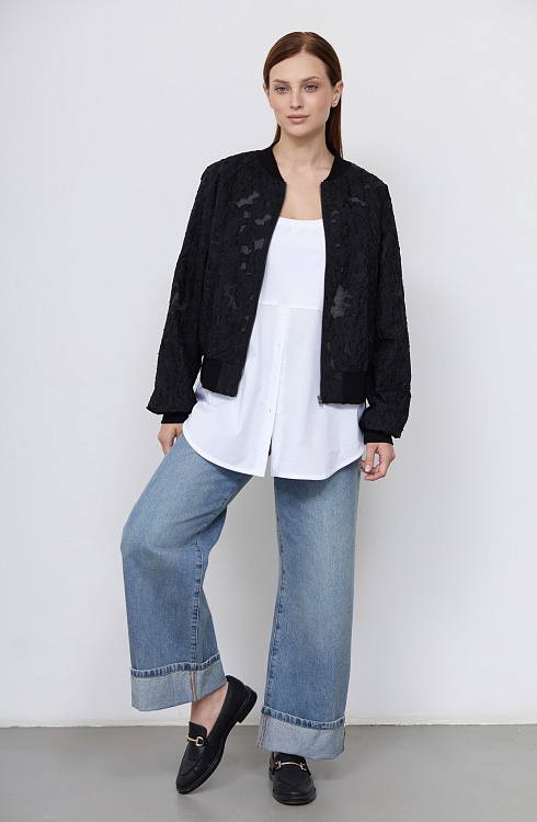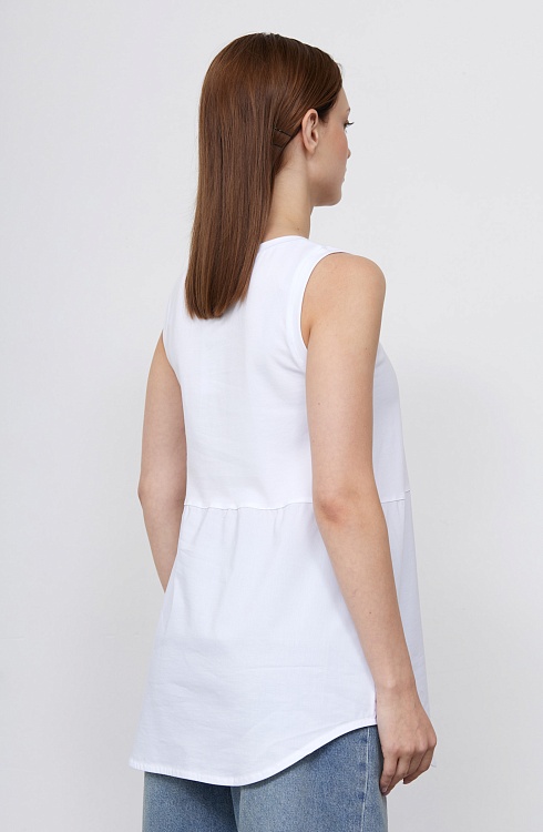 Комбинированный топ с верхней частью из хлопкового трикотажа и низом из гладкого хлопкового текстиля на пуговицах.