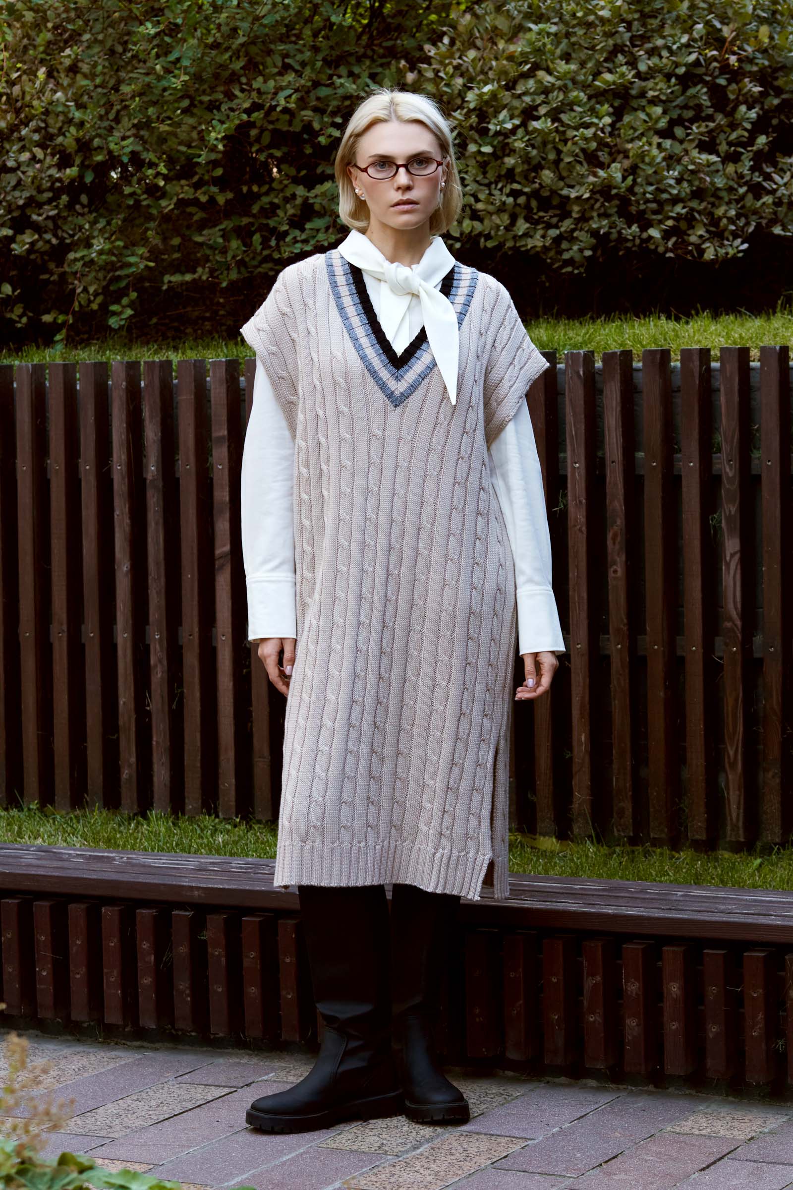 Вязаное платье oversize в стиле преппи с шерстью.