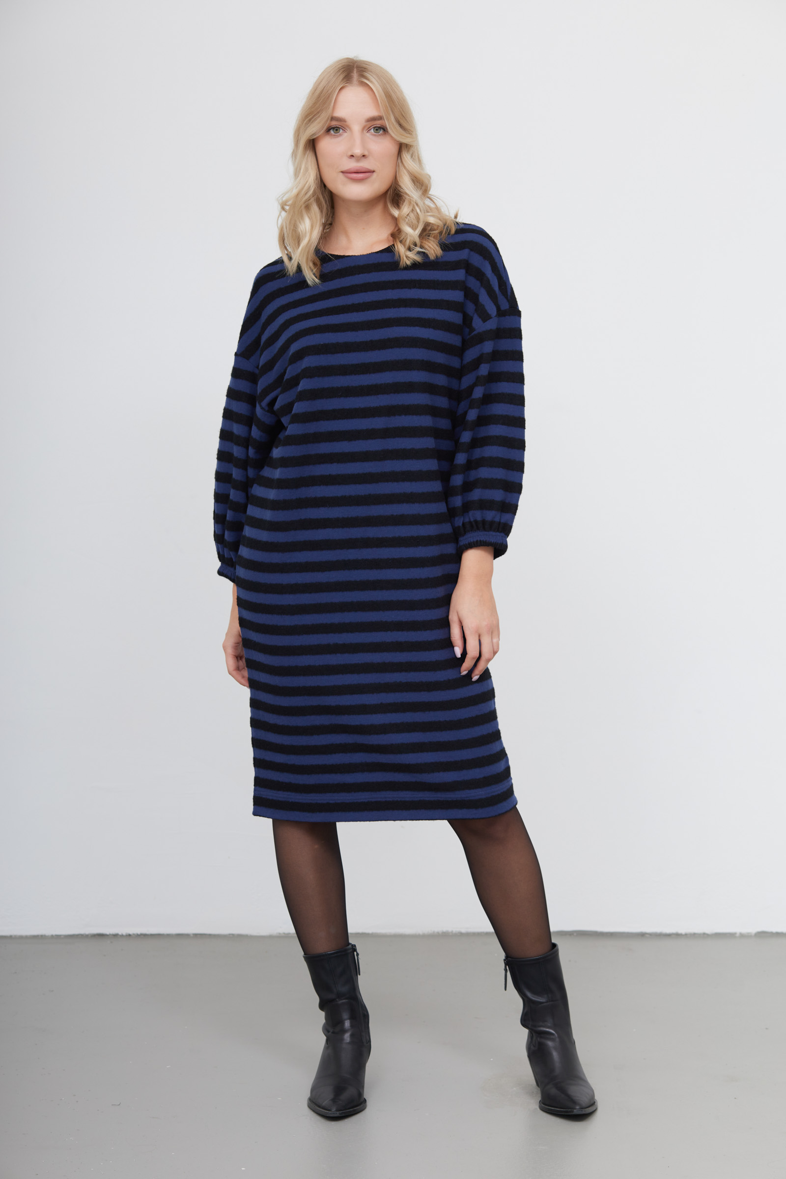 Платье oversize из мягкого трикотажа в фактурную полоску.