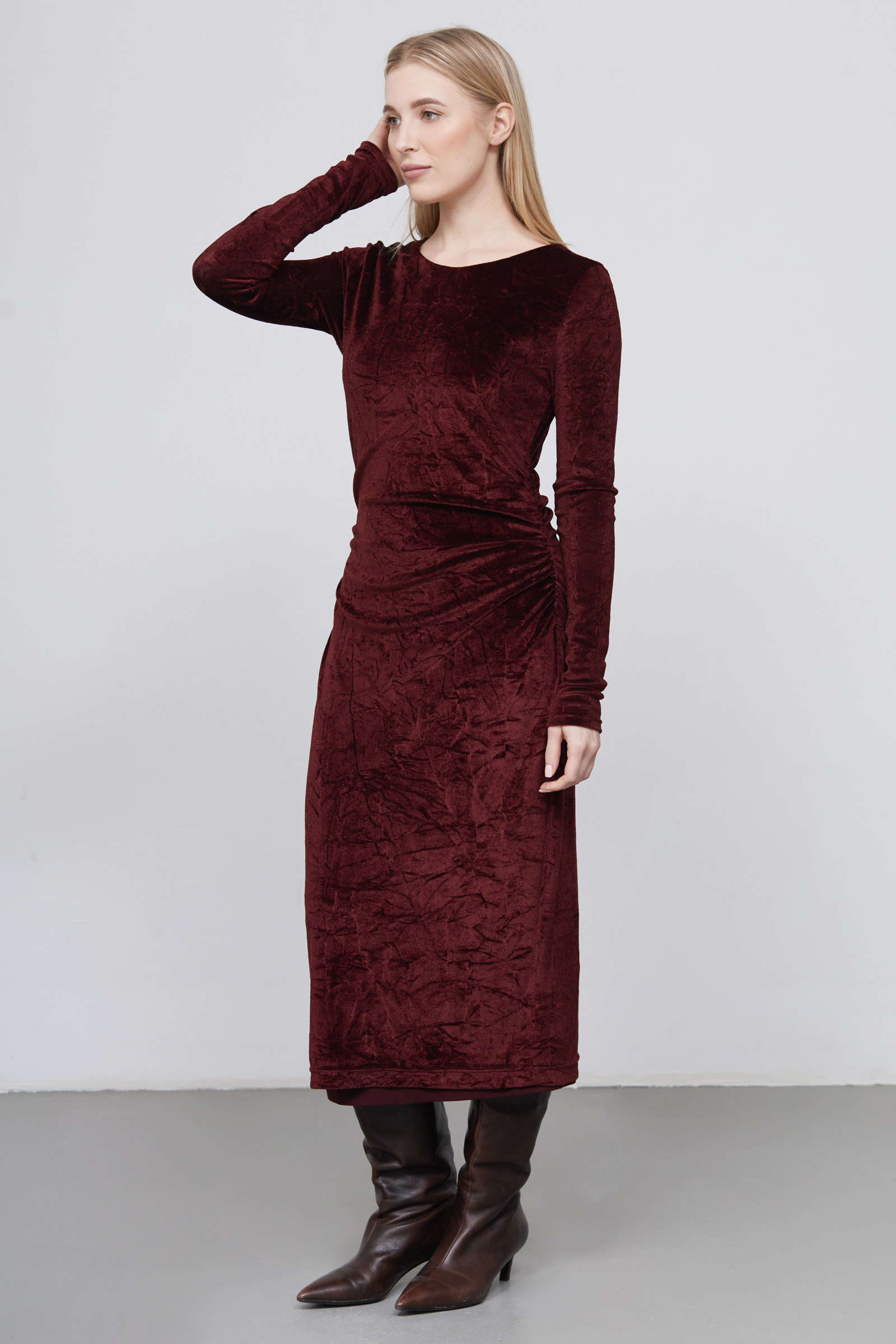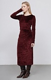 Платье миди из бархата с жатым эффектом и сборкой сбоку.