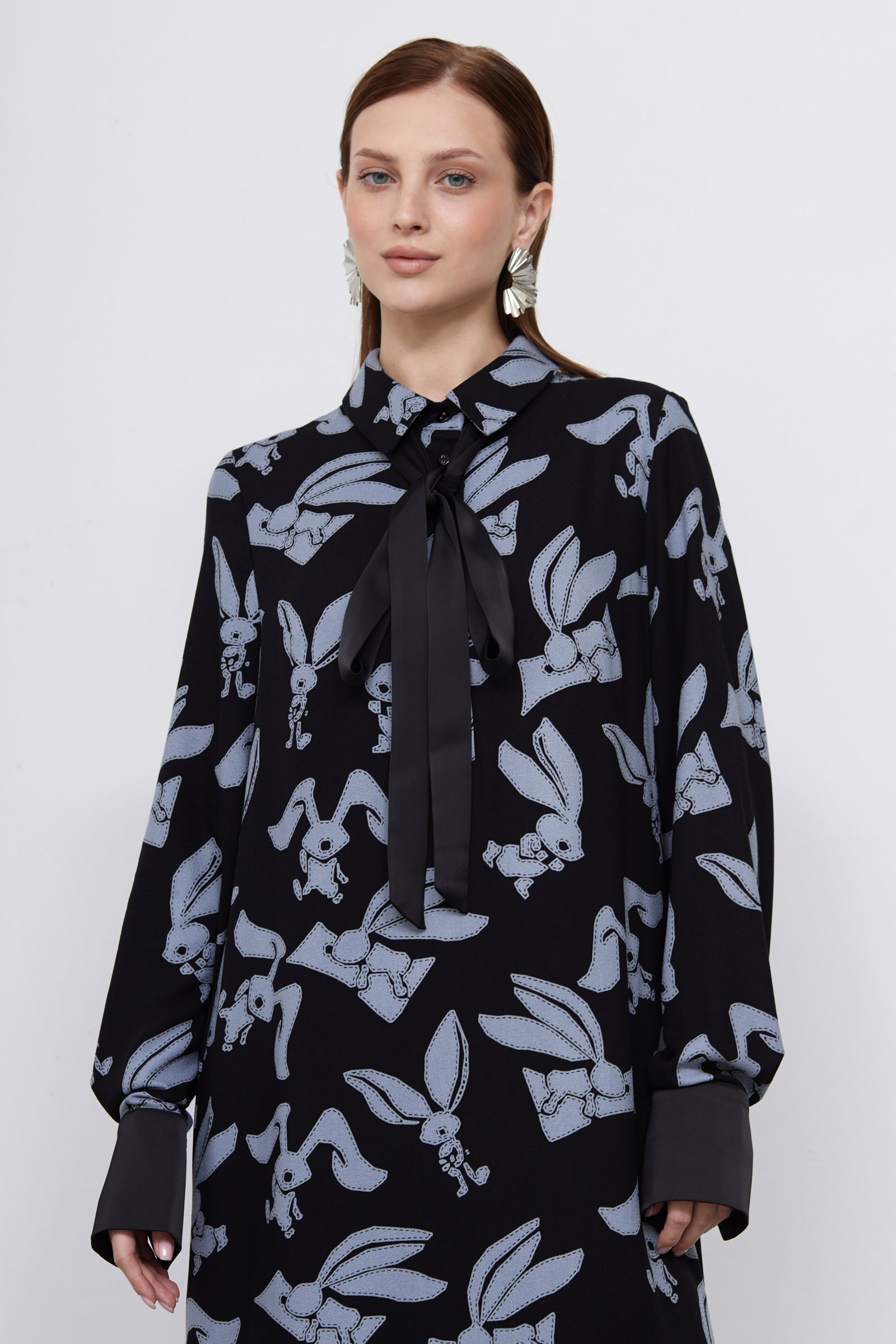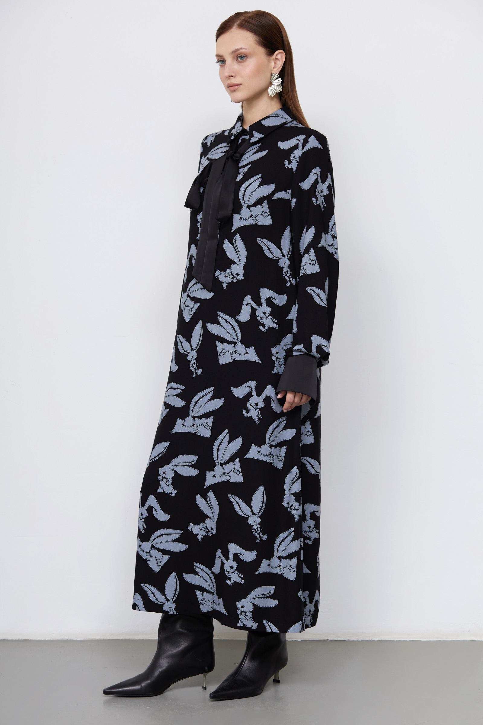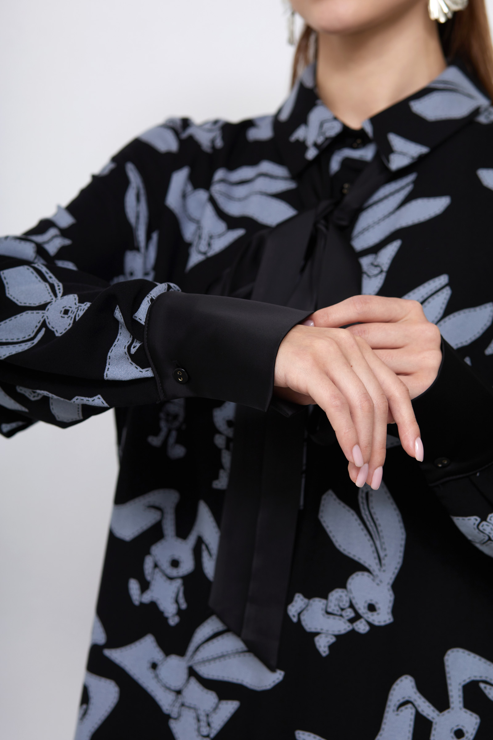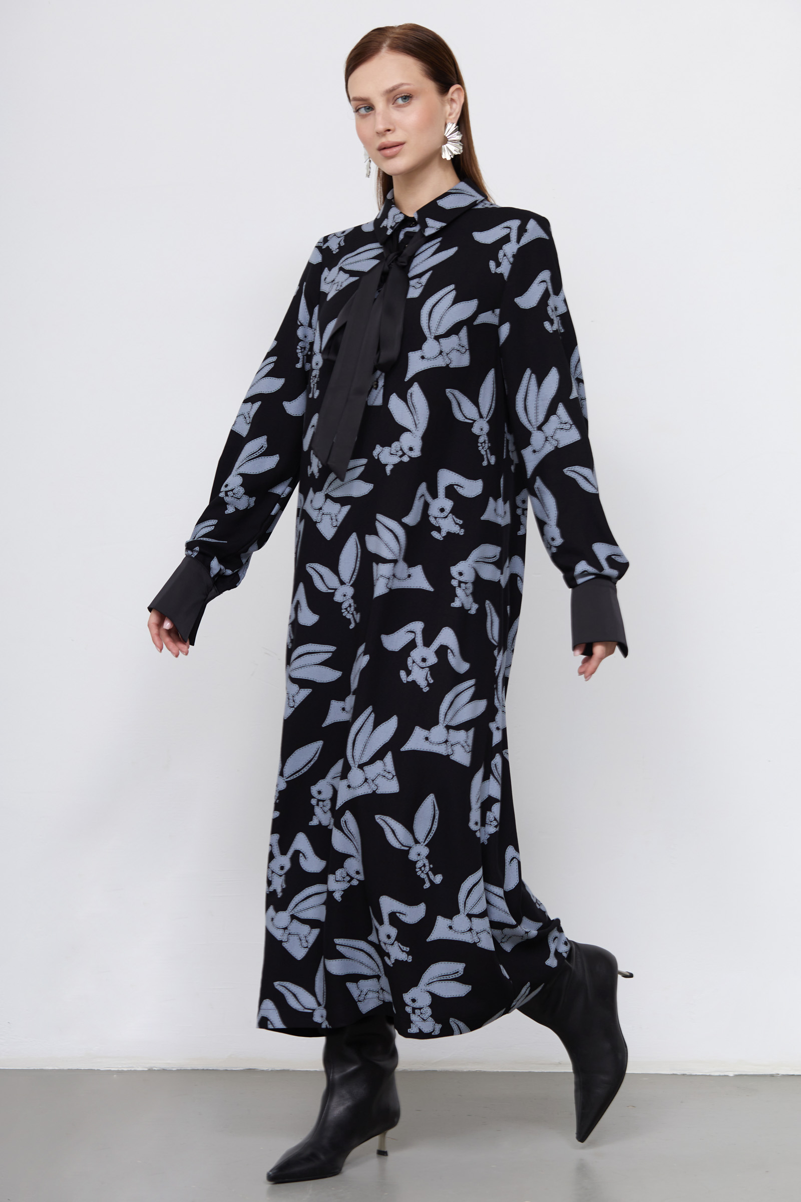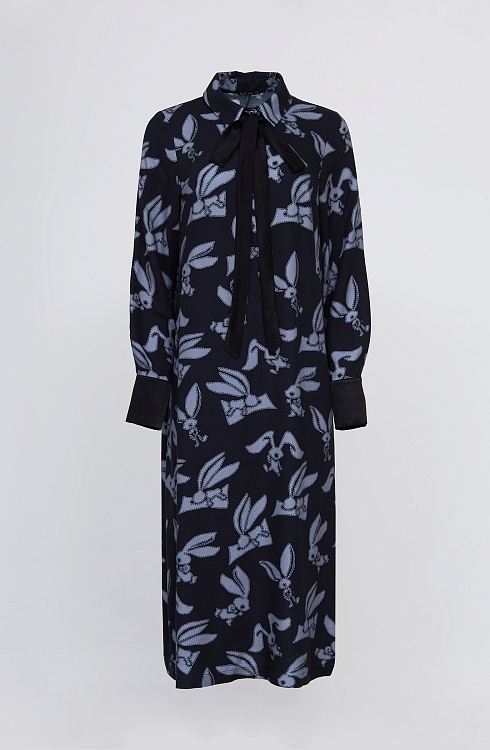Длинное платье из креповой вискозы с фантазийным принтом и съемным атласным галстуком.
