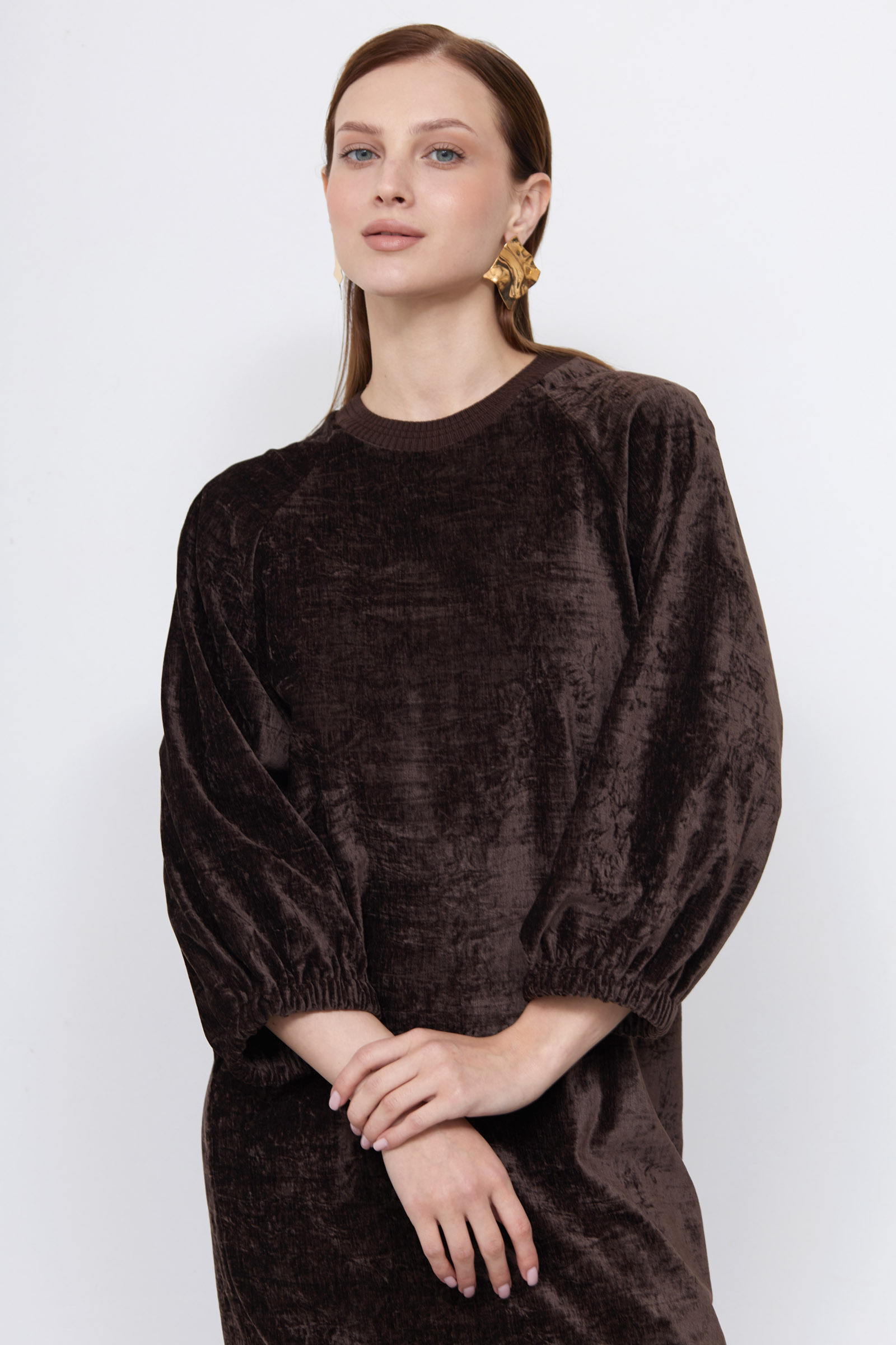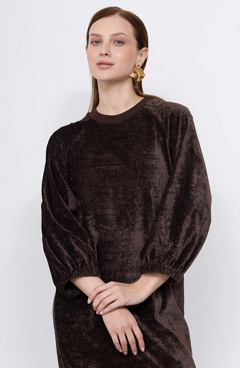 Платье oversize из бархата с жатым эффектом.