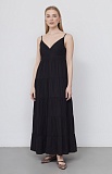 Длинное ярусное платье изо льна и вискозы на тонких бретелях.