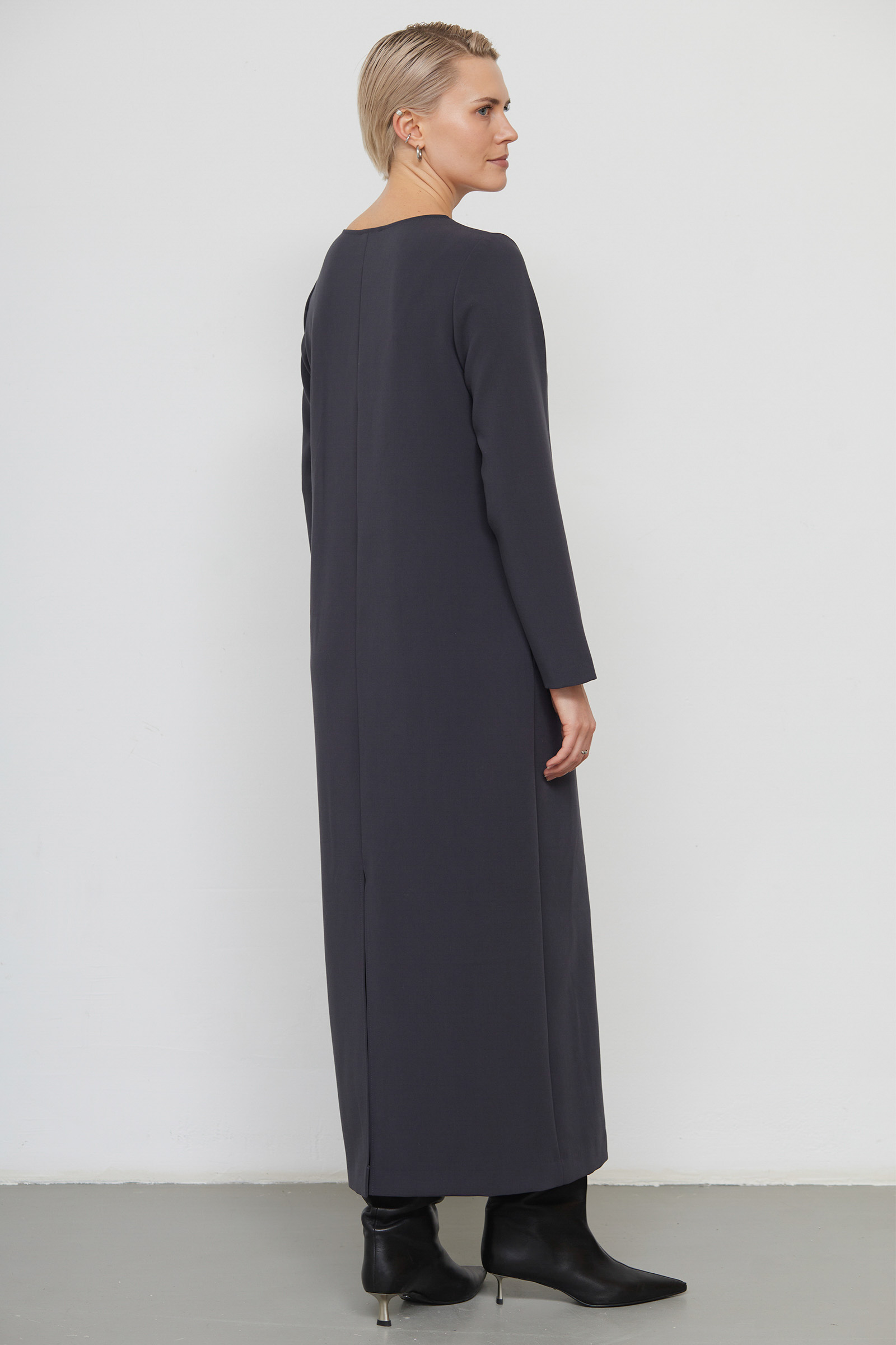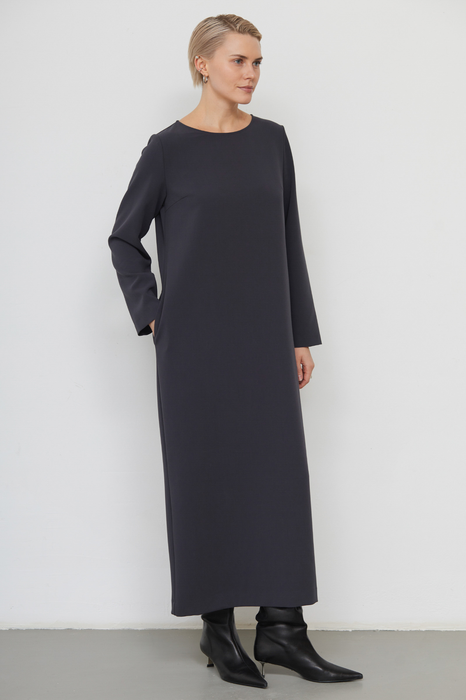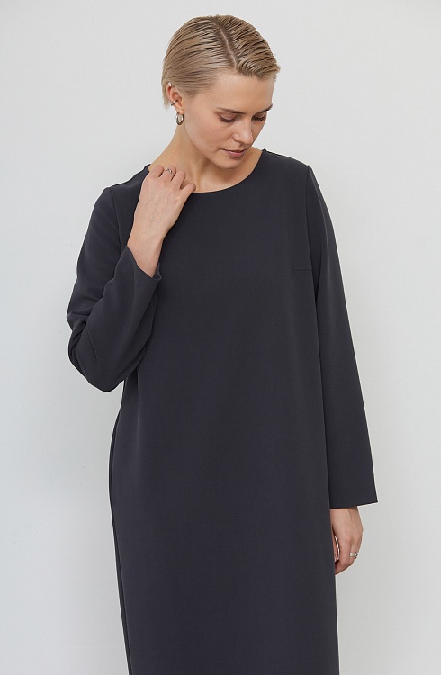 Платье oversize из плотной поливискозы с длинными рукавами.