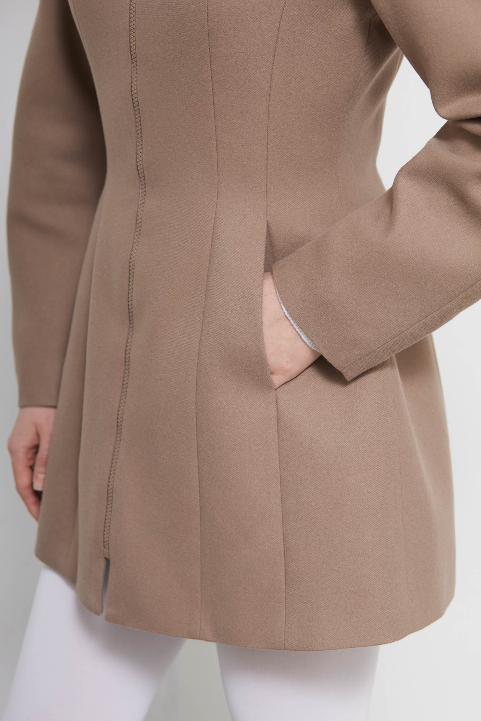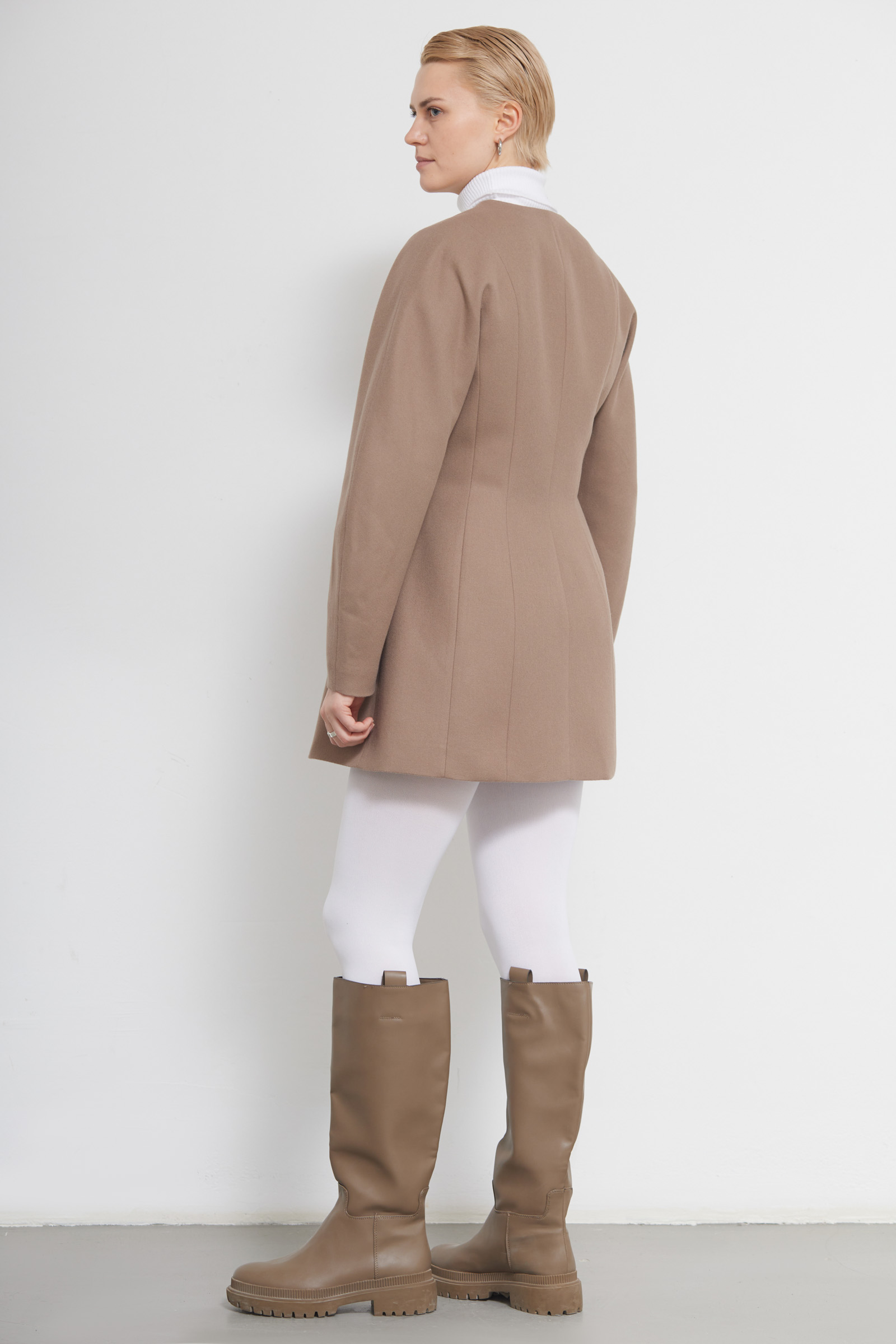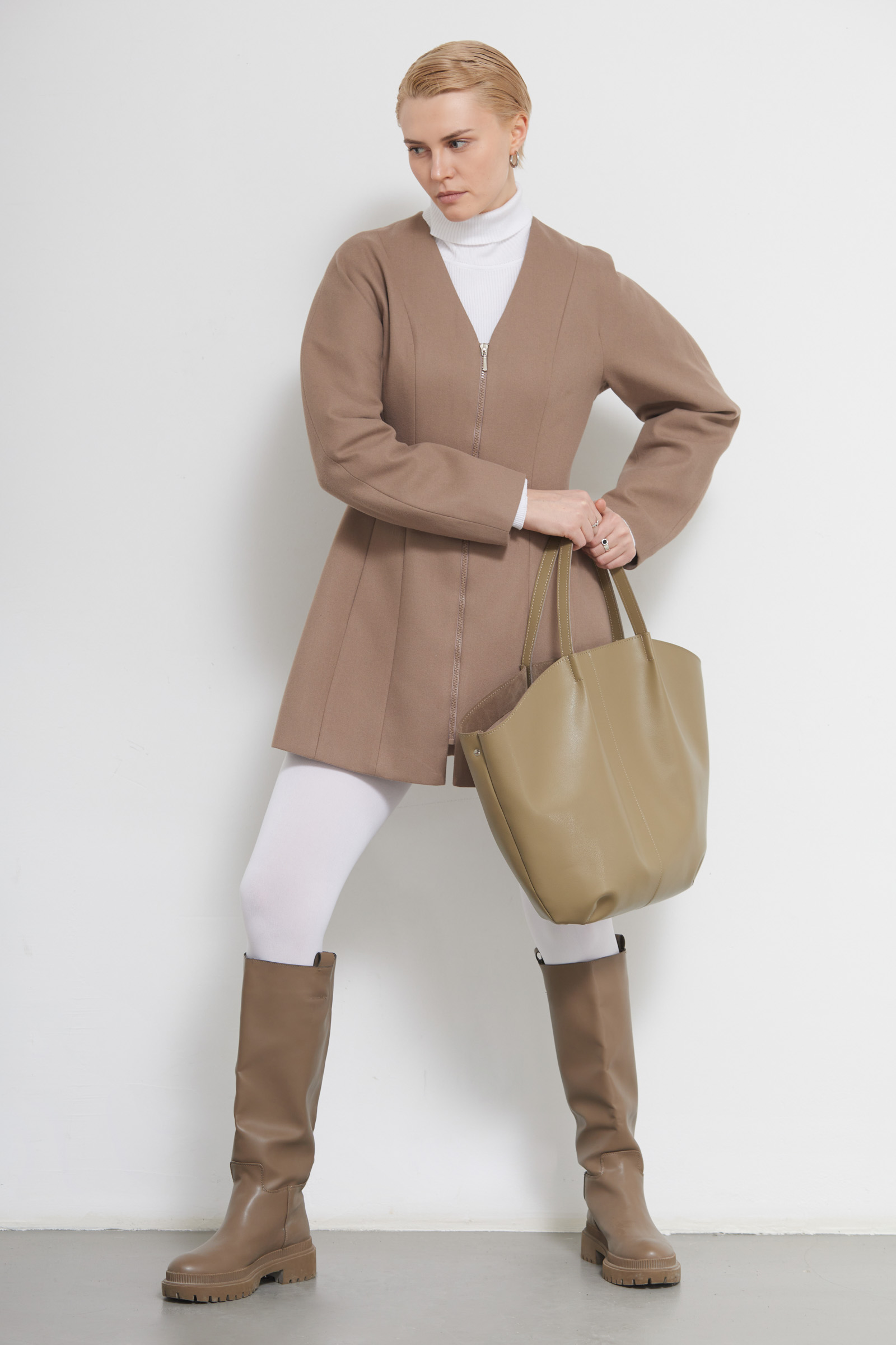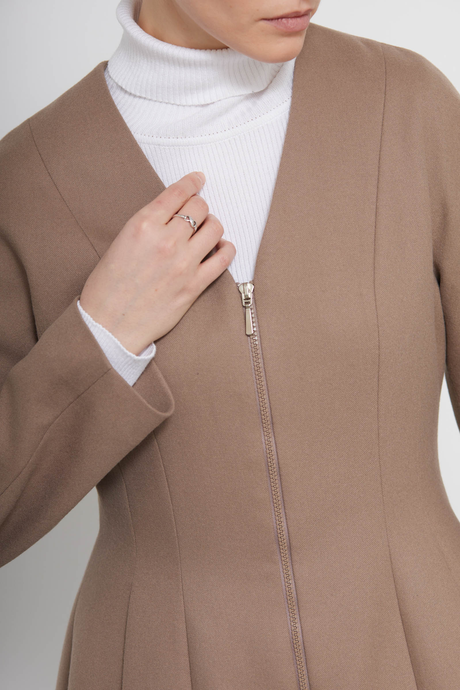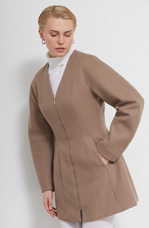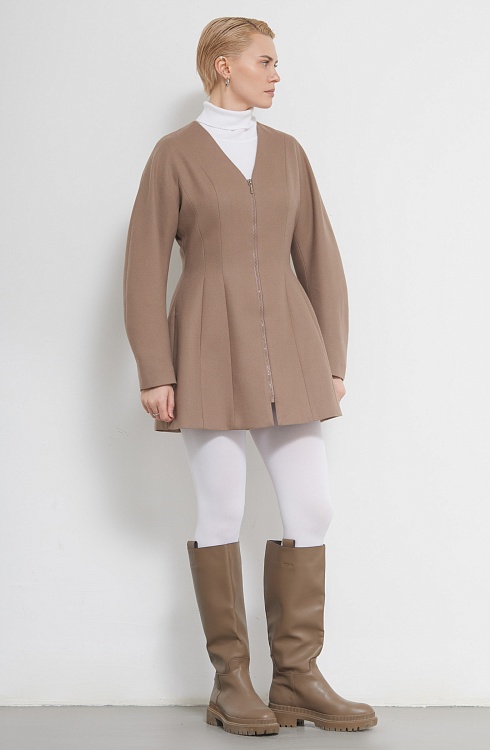 Короткое платье из мягкой фланелевой ткани на молнии с рельефными швами.